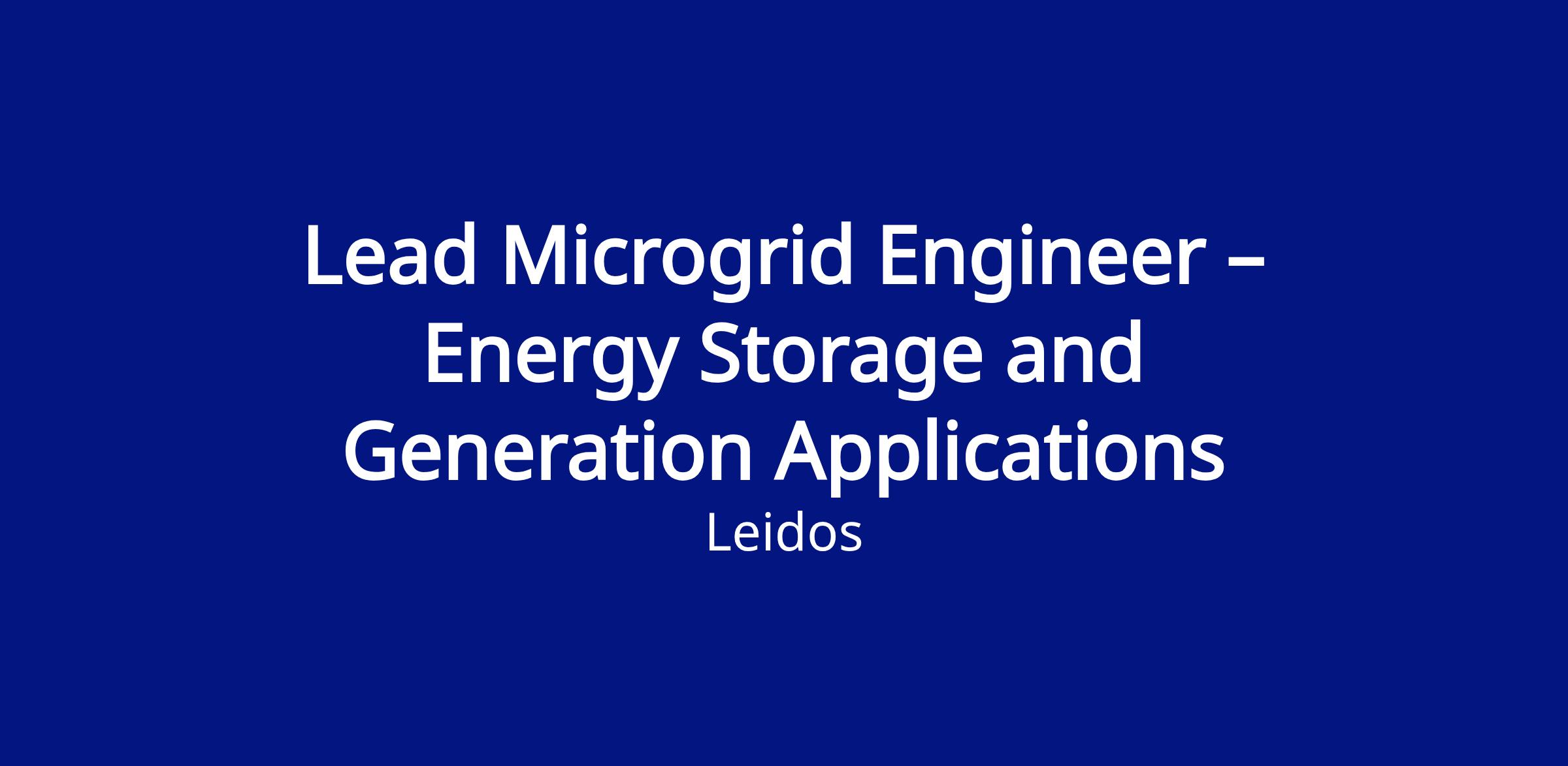 Leidos' Power Delivery Solutions (PDS) division is hiring for a Lead Microgrid Engineer - Energy Storage and Generation Applications (100% Remote) to provide comprehensive applications/project engineering support for our distributed energy and microgrid projects that typically include managing a variety of DER and microgrid assets such as solar, energy storage, controls, and reciprocating engines. The role reports to the Chief Engineer and requires demonstrated Owner’s Engineering experience in solar PV and other generation technologies, supporting multiple clients through the full project lifecycle.