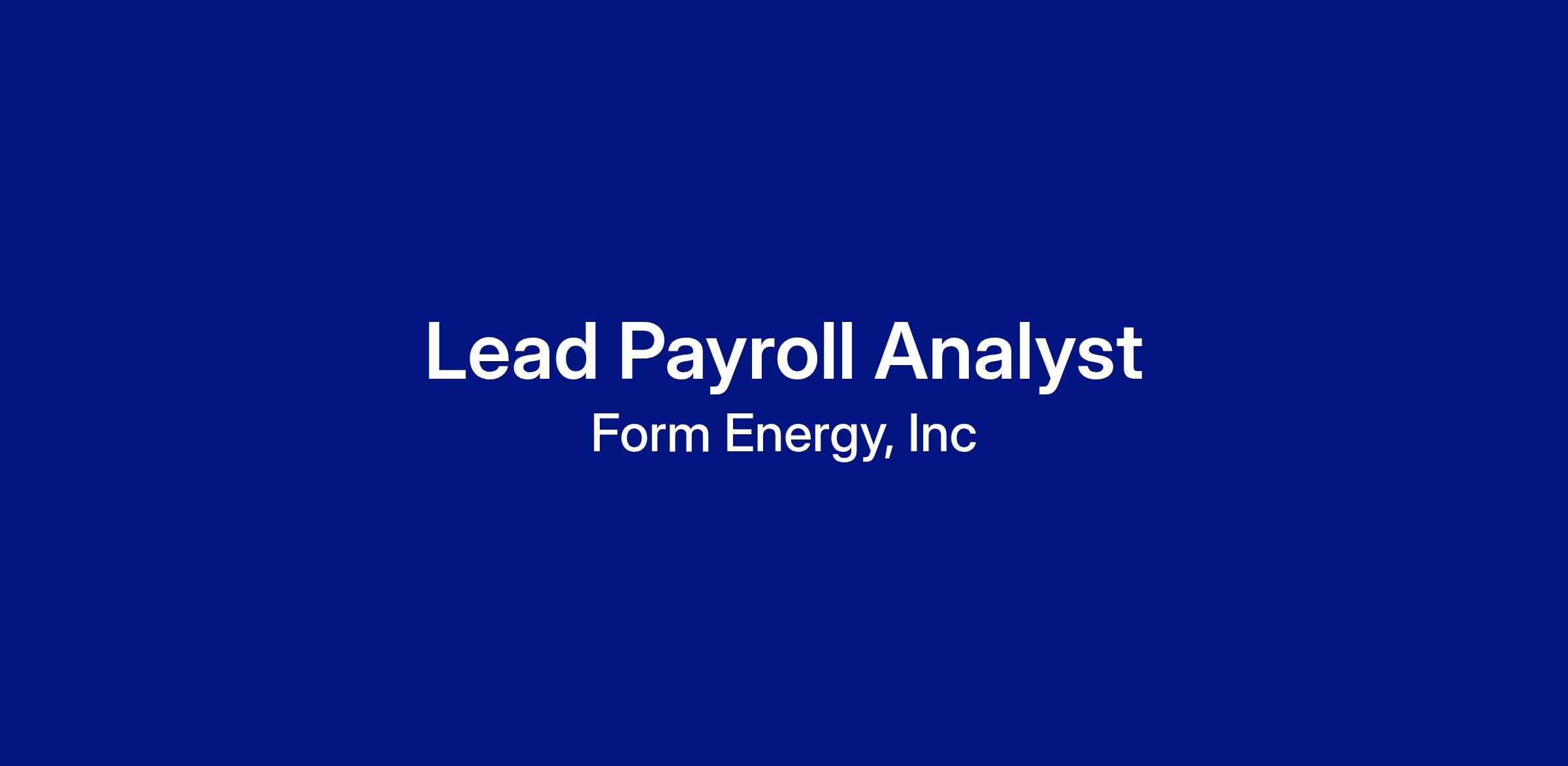 Form Energy is hiring a Lead Payroll Analyst to support our Payroll Team with system optimization, strategic reporting, data analysis and audits, while providing backup support for payroll processing and lifecycle events. This role reports into our Manager, People Operations on the HR Systems & Benefits team, and partners with other Payroll and Systems Specialists to increase efficiency, identify and reduce roadblocks, and automate employee lifecycle activities.