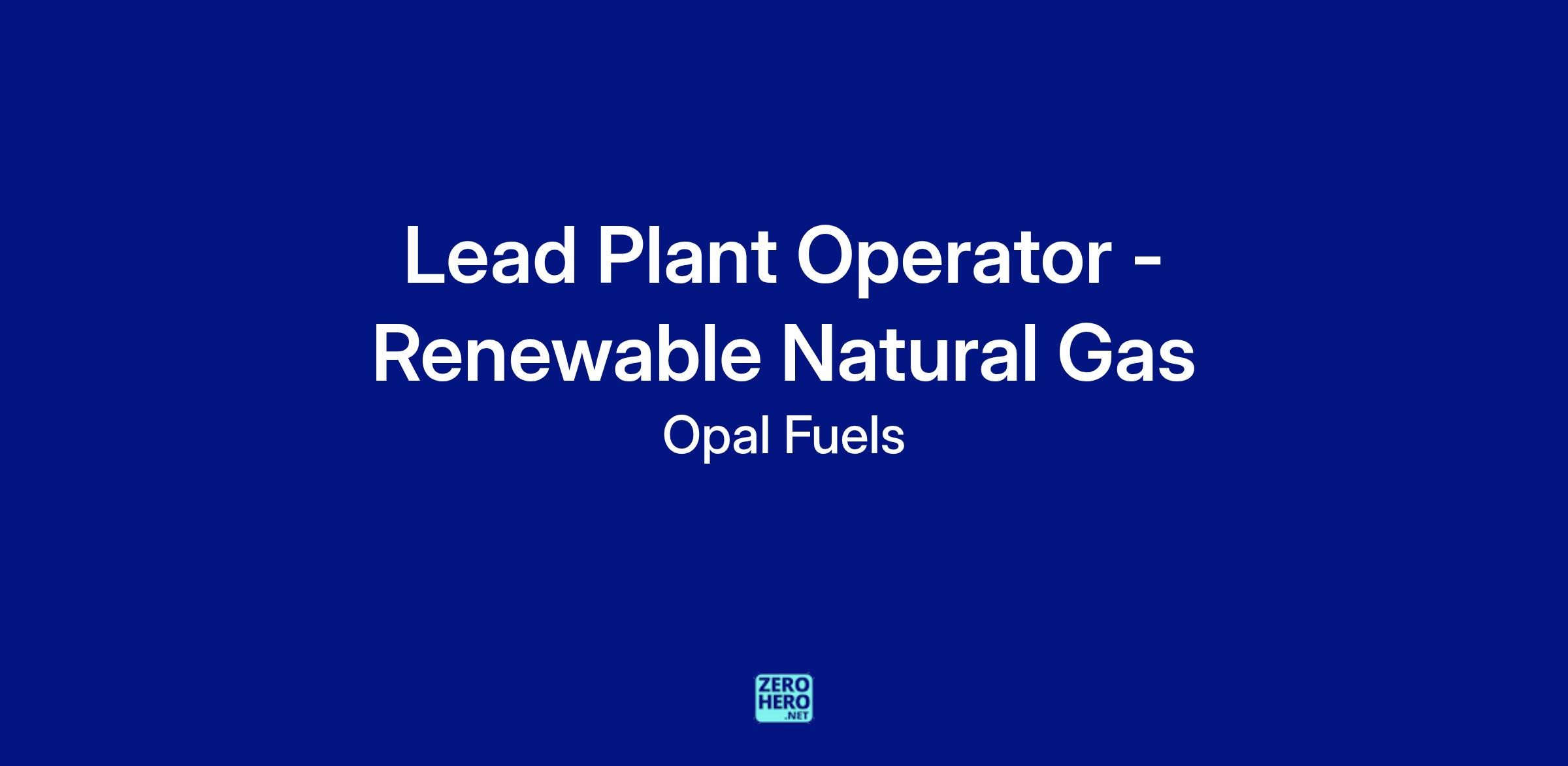 Position SummaryWe are hiring for a Lead Plant Operator with experience to work at our Emerald RNG site, located in Northville, MI as part of our Operations department. The Lead Plant Operator is responsible for the direction and supervision of all day-to-day activities in a Renewable Natural Gas facility. This position reports to the Plant Manager and shares accountability of the day-to-day operations of the site. This position will lead a team of four other operators with the goals of maximizing production and minimizing downtime with the utmost regard to safety, cleanliness, and environmental compliance.