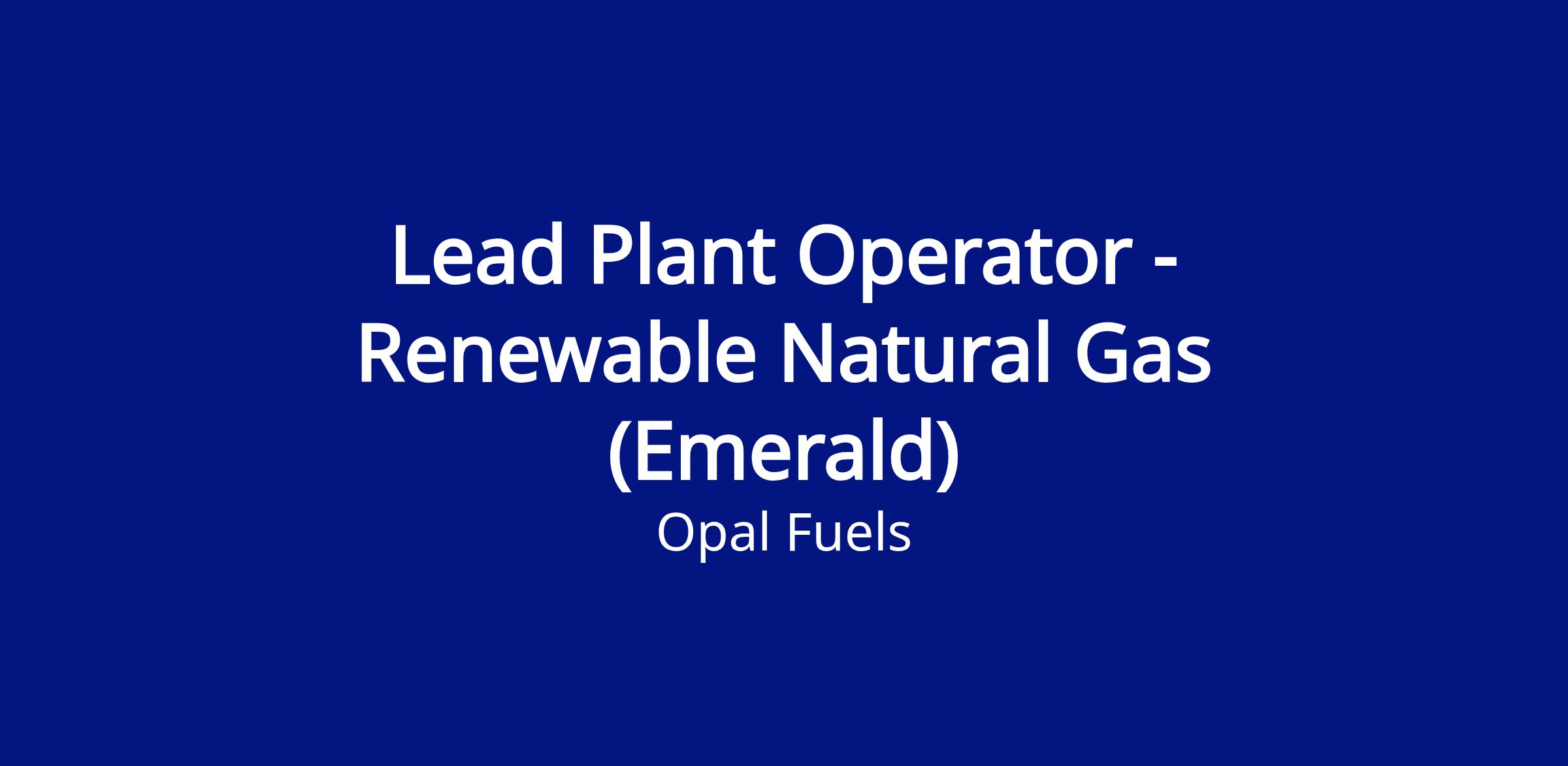 Position SummaryWe are hiring for a Lead Plant Operator with experience to work at our Emerald RNG site, located in Northville, MI as part of our Operations department. The Lead Plant Operator is responsible for the direction and supervision of all day-to-day activities in a Renewable Natural Gas facility. This position reports to the Plant Manager and shares accountability of the day-to-day operations of the site. This position will lead a team of four other operators with the goals of maximizing production and minimizing downtime with the utmost regard to safety, cleanliness, and environmental compliance.
