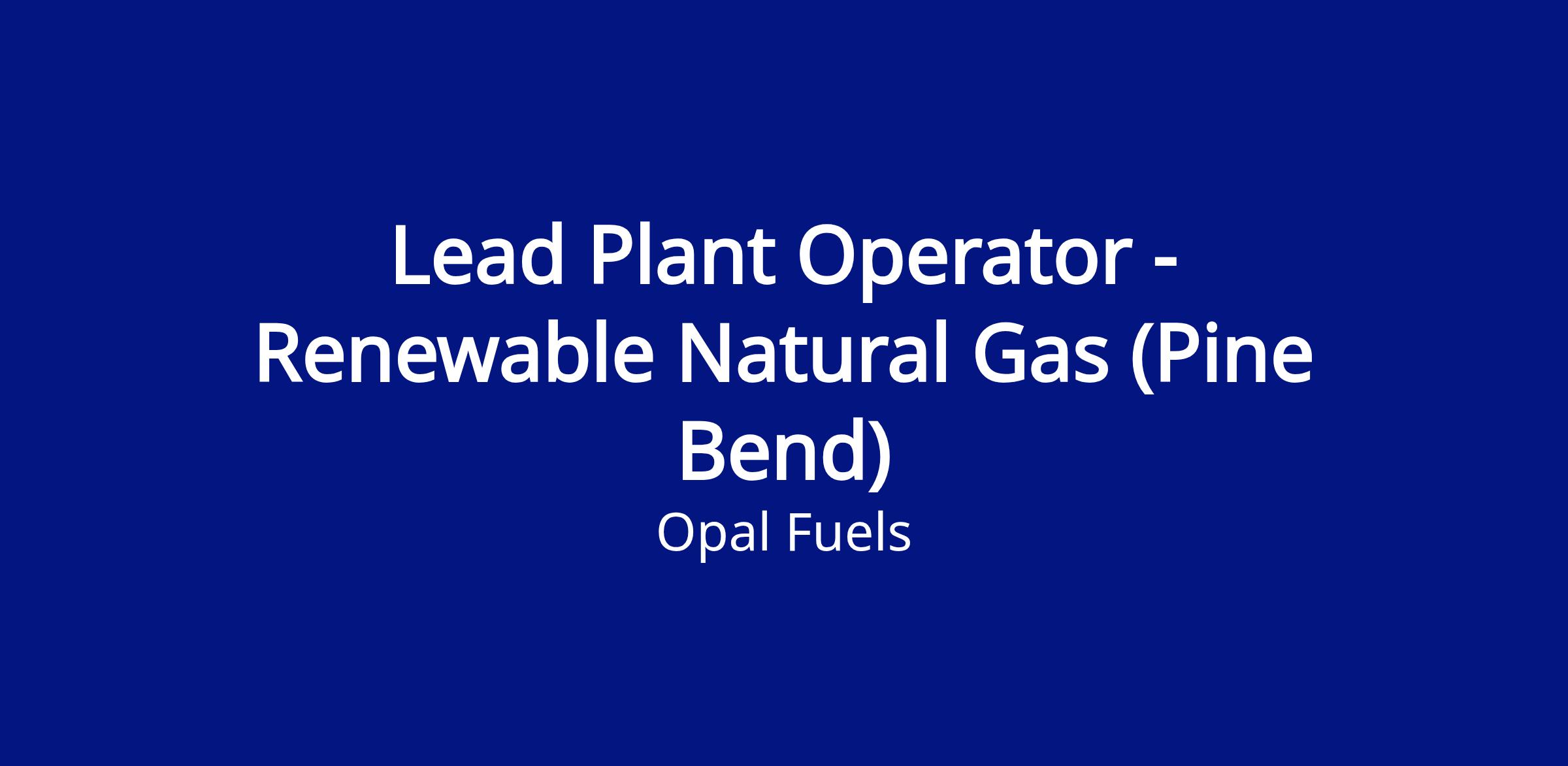 Position SummaryWe are hiring for a Lead Plant Operator with experience to work at our Pine Bend RNG site, located in Inver Heights, MN as part of our Operations department. The Lead Plant Operator is responsible for the direction and supervision of all day-to-day activities in a Renewable Natural Gas facility. This position reports to the Plant Manager and shares accountability of the day-to-day operations of the site. This position will lead a team of four other operators with the goals of maximizing production and minimizing downtime with the utmost regard to safety, cleanliness, and environmental compliance.