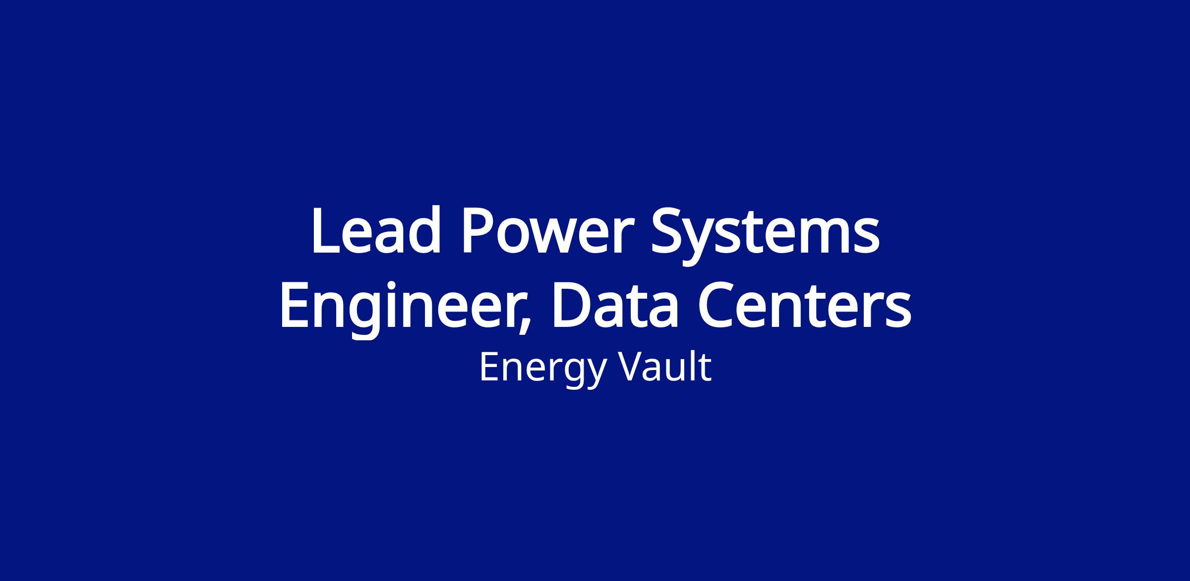 Your Impact as a Lead Power Systems Engineer, Data Centers: