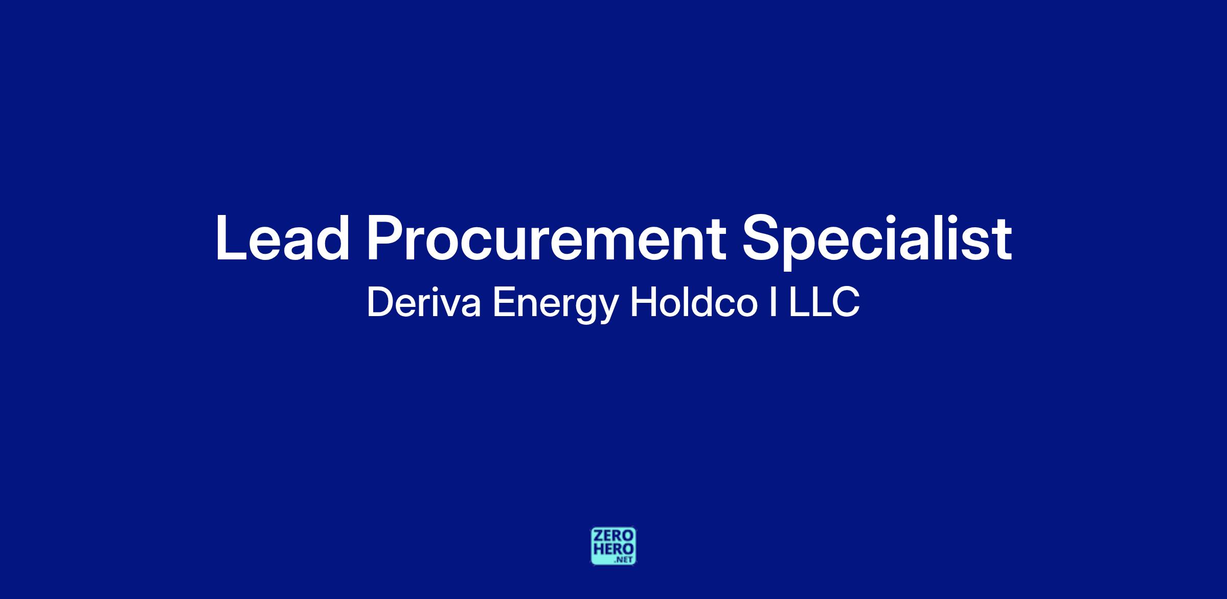 Deriva Energy, a portfolio company of Brookfield Renewable U.S., who is a nationwide leader in sustainable energy provides wind, solar, resilient backup power, and managed energy services to over 1,000 projects across the U.S., with a total electric capacity of more than 5,100 megawatts of nonregulated renewable energy is seeking a Lead Procurement Specialist - IT, to be based in their Charlotte, North Carolina headquarters.