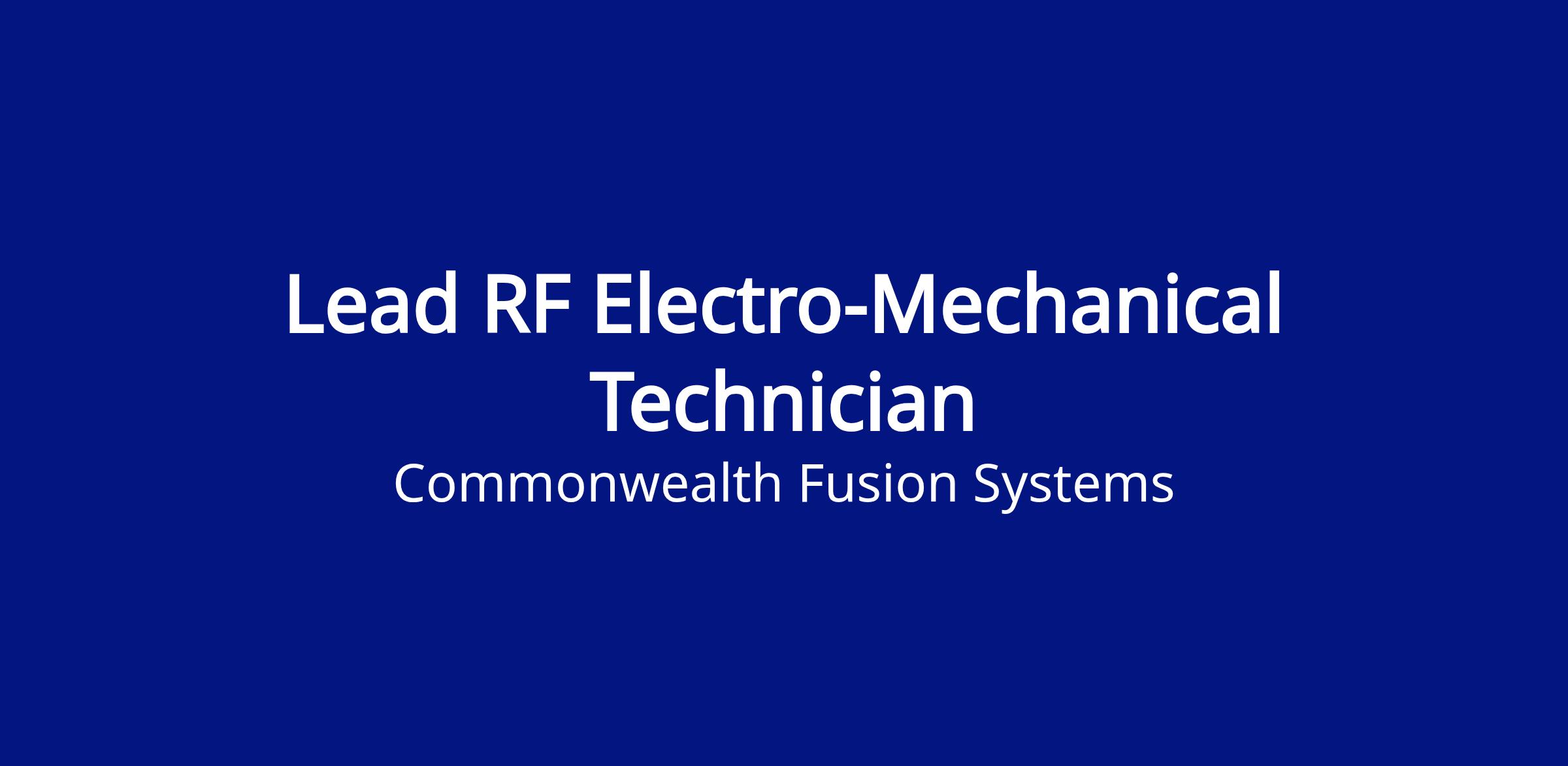 We are seeking a highly motivated Lead RF Electro-Mechanical Technician to join our team of physicists, engineers, and technicians in our core mission: accelerating the development of fusion energy.