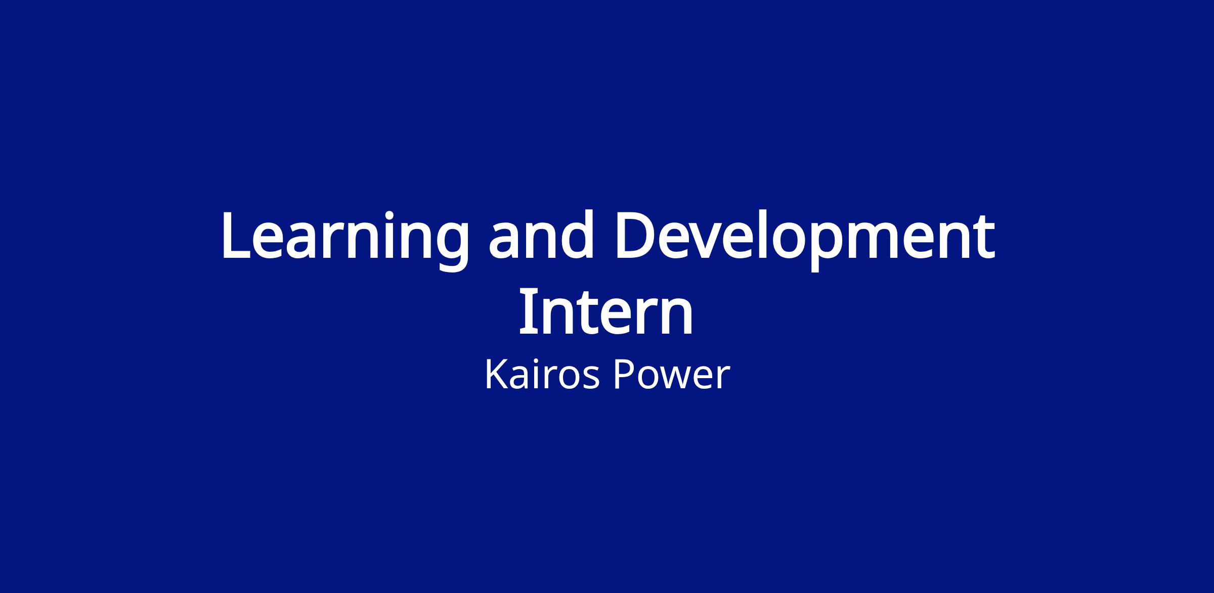 Kairos Power is seeking a curious and motivated Learning & Development Intern to support the design and delivery of impactful learning experiences in a fast-paced, mission-driven organization. This role is ideal for a student interested in organizational development, leadership development, adult learning, or HR strategy.