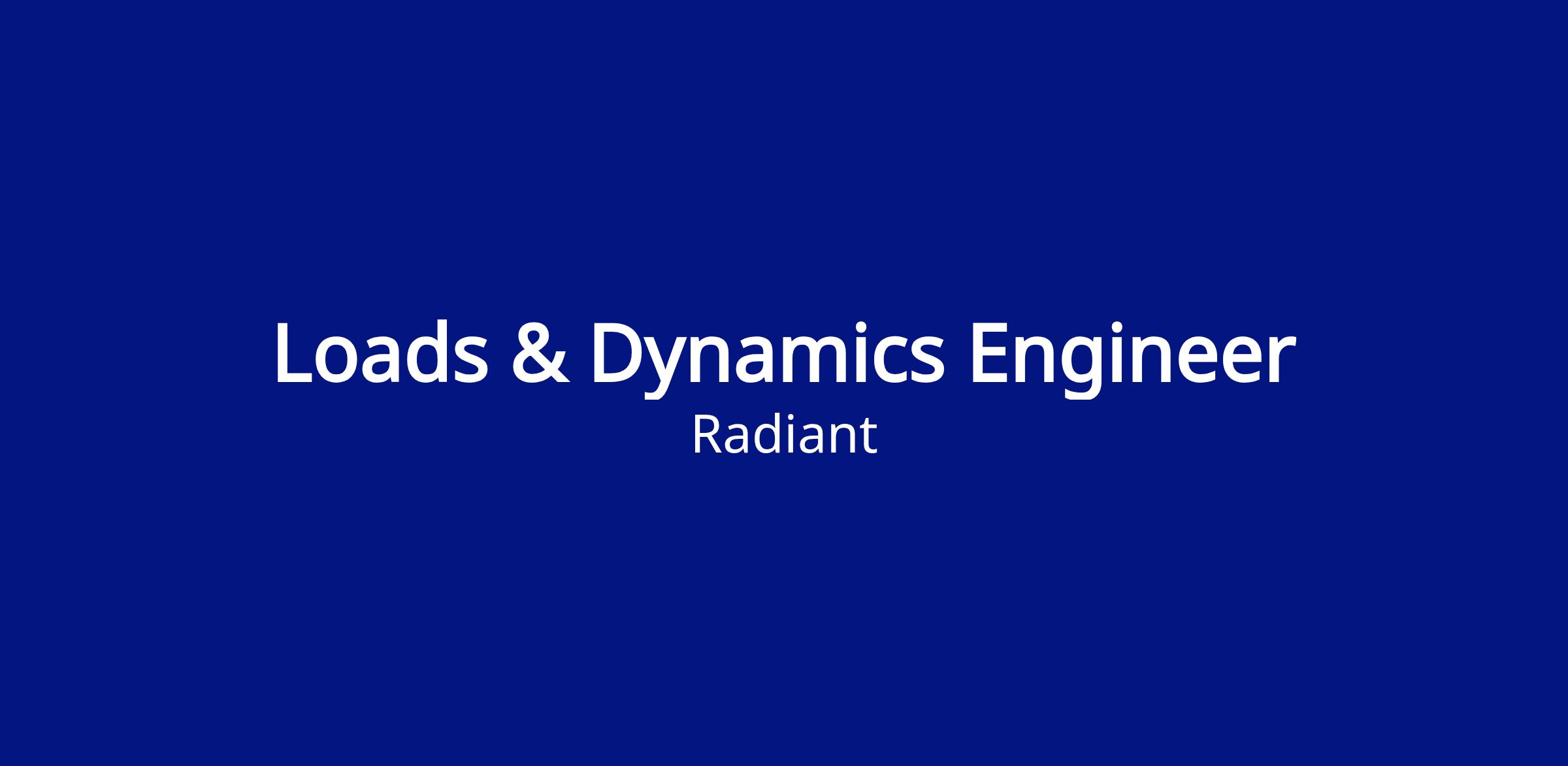 Radiant is seeking a Loads & Dynamics Engineer to own and execute structural loads, vibration, and dynamic analyses for complex mechanical systems associated for Kaleidos, the worlds first portable microreactor and supporting hardware. You will play a critical role in ensuring structural integrity and survivability across all phases of the product lifecycle, including manufacturing, transportation, handling, deployment, and operational environments.