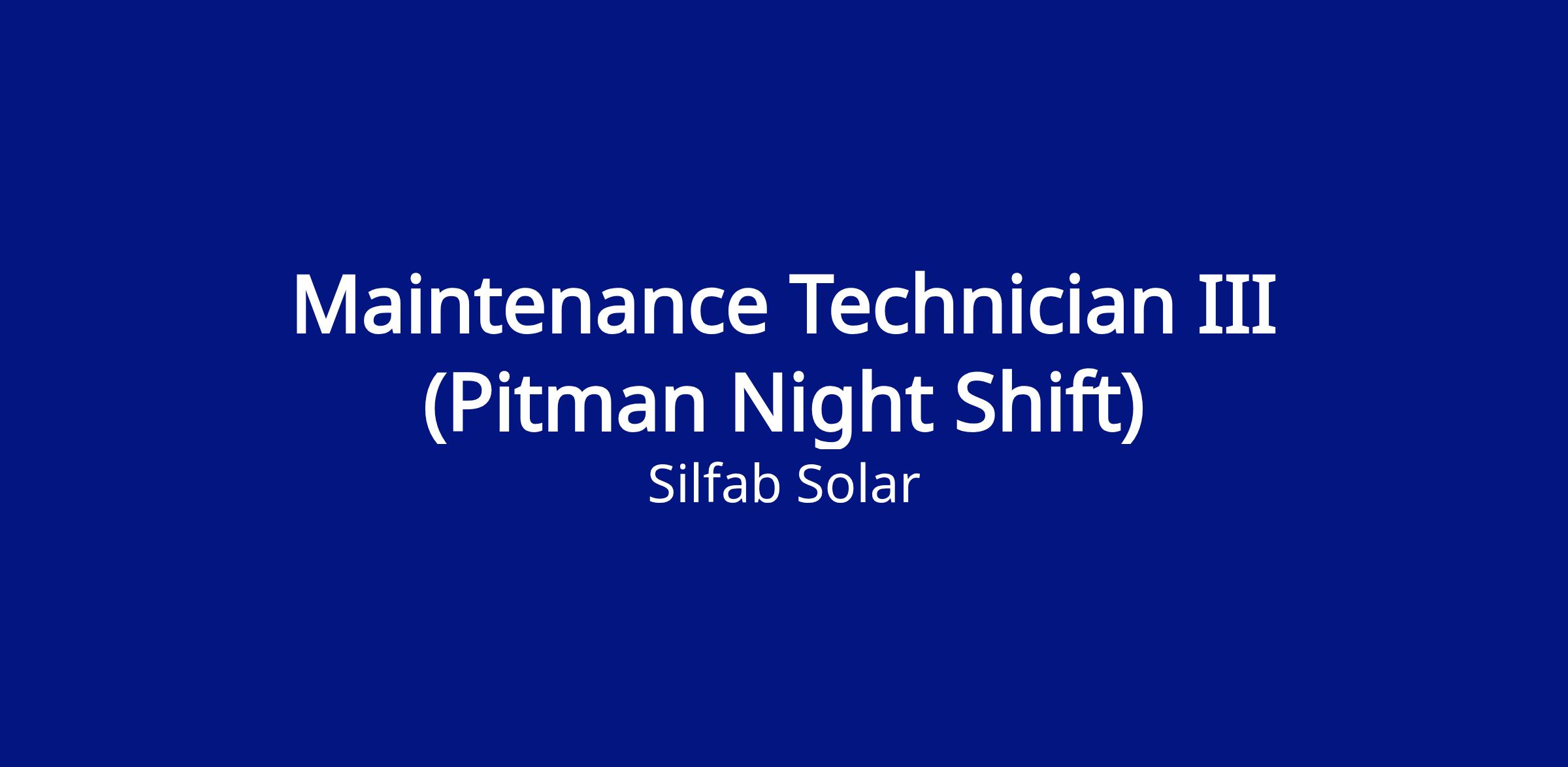 A Maintenance Technician III is responsible for performing facility and process equipment preventative maintenance, attending to equipment downtime as required, and completing various projects related to maintenance and engineering requests. This position requires 6 or more years of maintenance experience in a manufacturing environment or 4 years of maintenance experience with a recognized trade certification.