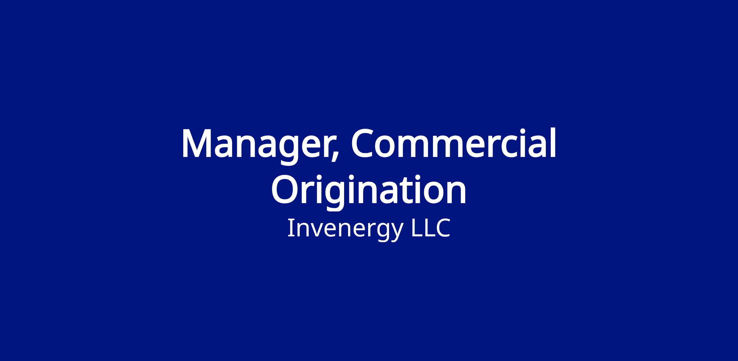 As an Origination Manager, you will be responsible for marketing the company's capabilities and projects to its customers. This role will also play a key part in the execution of commercial offtake arrangements (Power Purchase Agreements (PPAs) , Build-Transfers (BTAs), Development Transfers (DTAs) or Asset Purchases (APAs). The ideal candidate brings utility-scale energy commercial experience, a strong bias for action, broad understanding of energy markets, and experience leading internal and external stakeholder conversations. This role will work on a variety of technologies critical to Invenergy Business strategy including solar, wind, battery storage, and natural gas fired generation. This is a highly visible role requiring clear communication, curiosity, organization, and proficient coordination across multiple facets of the organization.