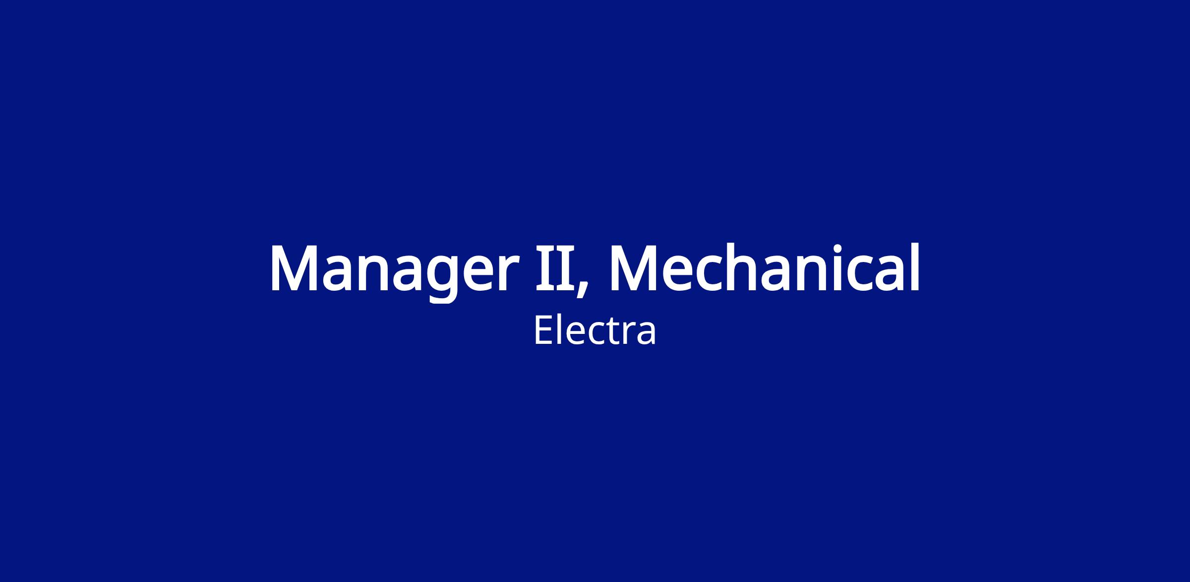 Electra is seeking an experienced Manager II, Mechanical to lead the mechanical maintenance team at our new clean‑iron demonstration plant. This role supports commissioning and startup activities and ensures the reliability, safety, and efficiency of mechanical equipment and plant infrastructure.