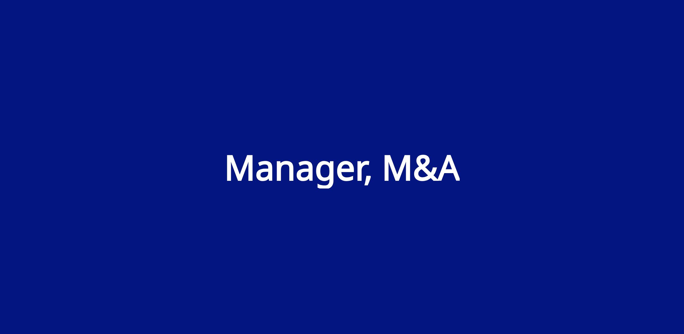 Title: Manager, M&A