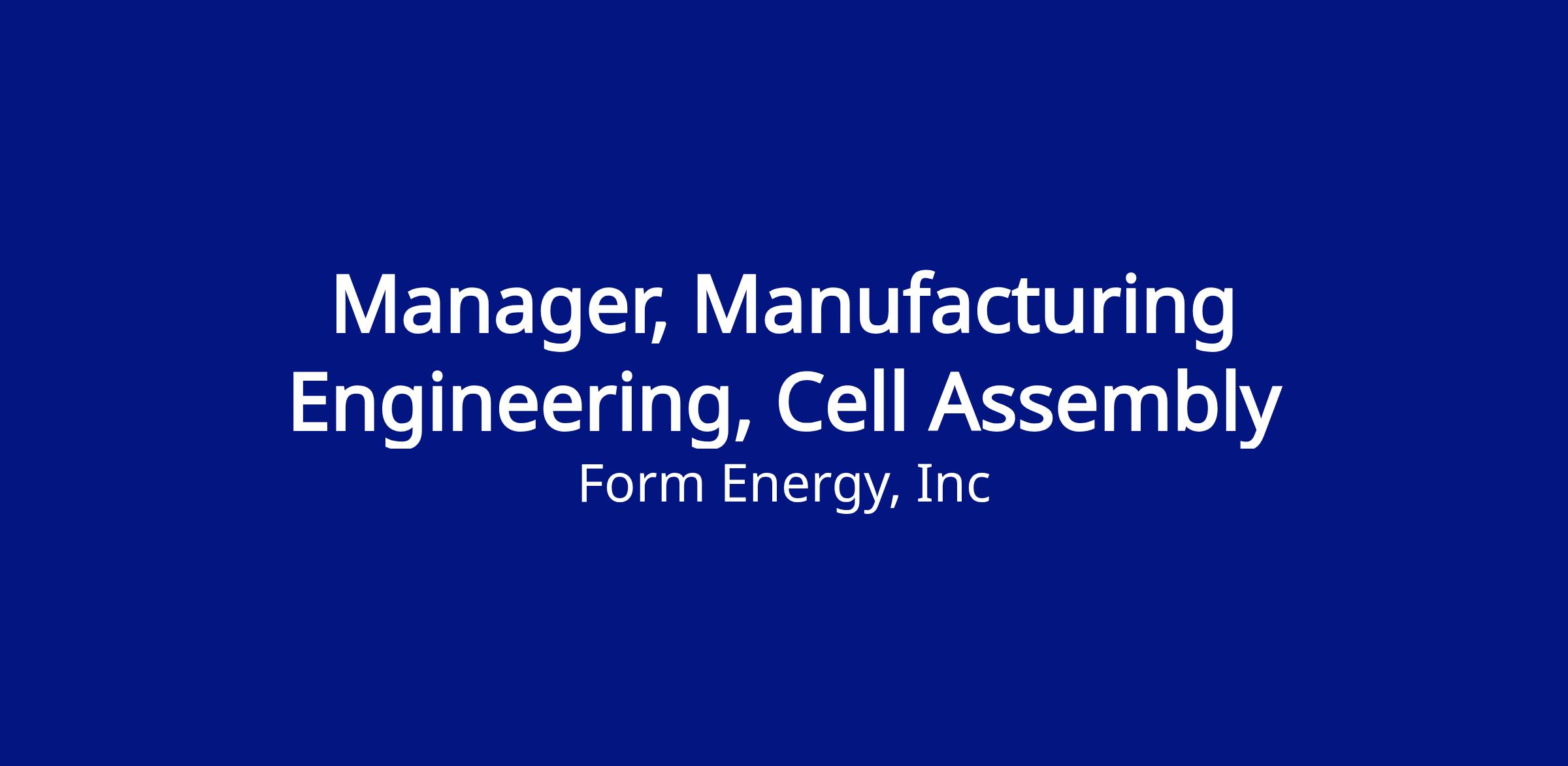 Form Energy is hiring a Manufacturing Engineering Manager to lead our cell assembly area. In this pivotal role, you will bridge the gap between initial product design and high-volume production, overseeing the entire lifecycle of cell assembly processes. You will be responsible for building and mentoring a high-performing engineering team while spearheading the procurement and commissioning of cutting-edge manufacturing equipment.