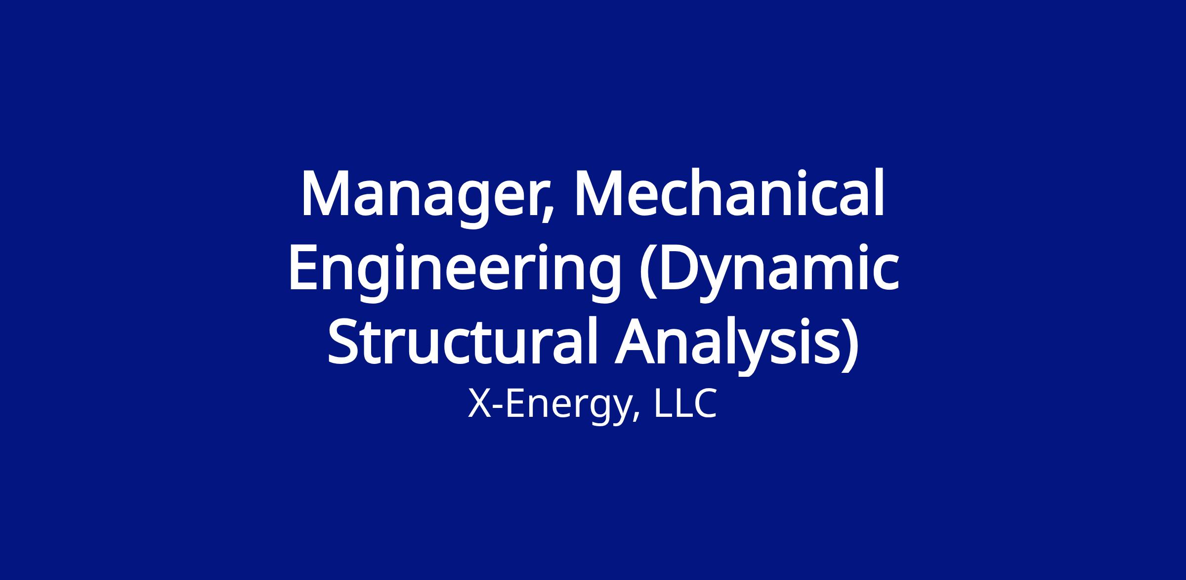 X-energy, LLC is seeking an accomplished Mechanical Engineering Manager (Dynamic Structural Analysis) to lead our advanced Mechanical Structural Analysis team. This leadership position drives the strategic direction and technical excellence of structural analyses of the Xe-100 Small Modular Reactor (SMR), with particular emphasis on mission-critical reactor systems. The successful candidate will provide leadership for the design and structural analysis of nuclear reactor system components and drive the implementation of best practices.