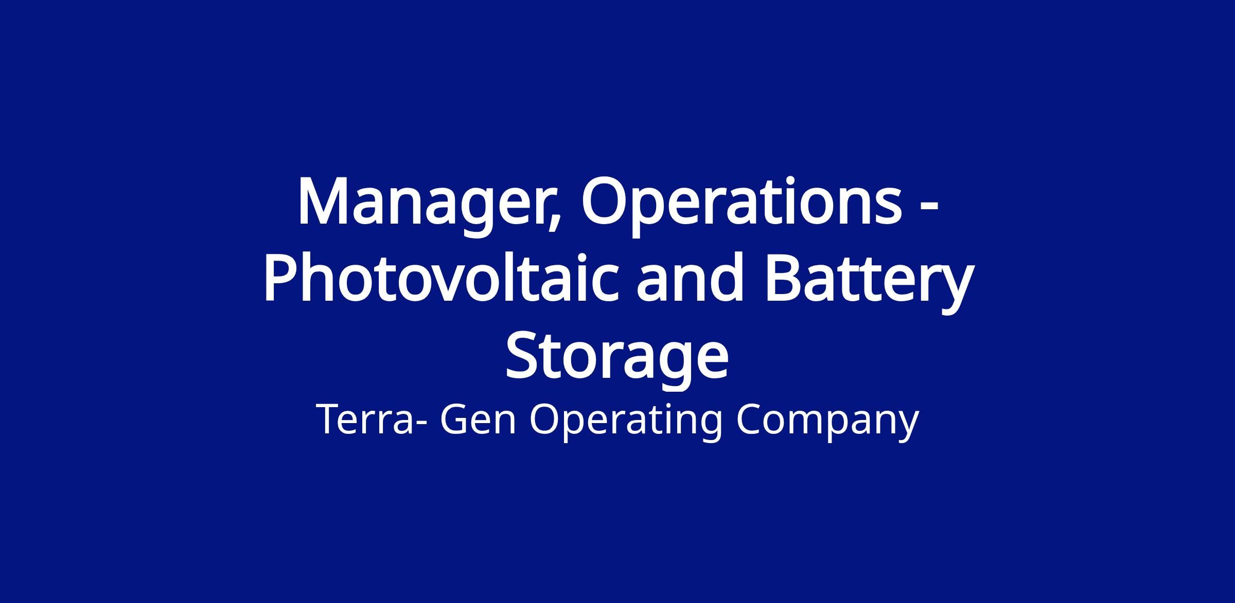 The Terra-Gen Photovoltaic (PV) and Battery Storage (BESS) Operations Manager is for an additional plant(s) within the Terra-Gen project portfolio. It is a manager position that leads and monitors all operational and maintenance functions for PV and BESS Facilities. The Office location is near Mojave CA and other designated plants as needed. It is a position managing multiple employees, OEM and vendors who perform tasks fulfilling duties specified in an executed O&M service agreement between Terra-Gen Operating Company, as the O&M Service Provider, and possibly several entities including Terra-Gen LLC, as the owner.