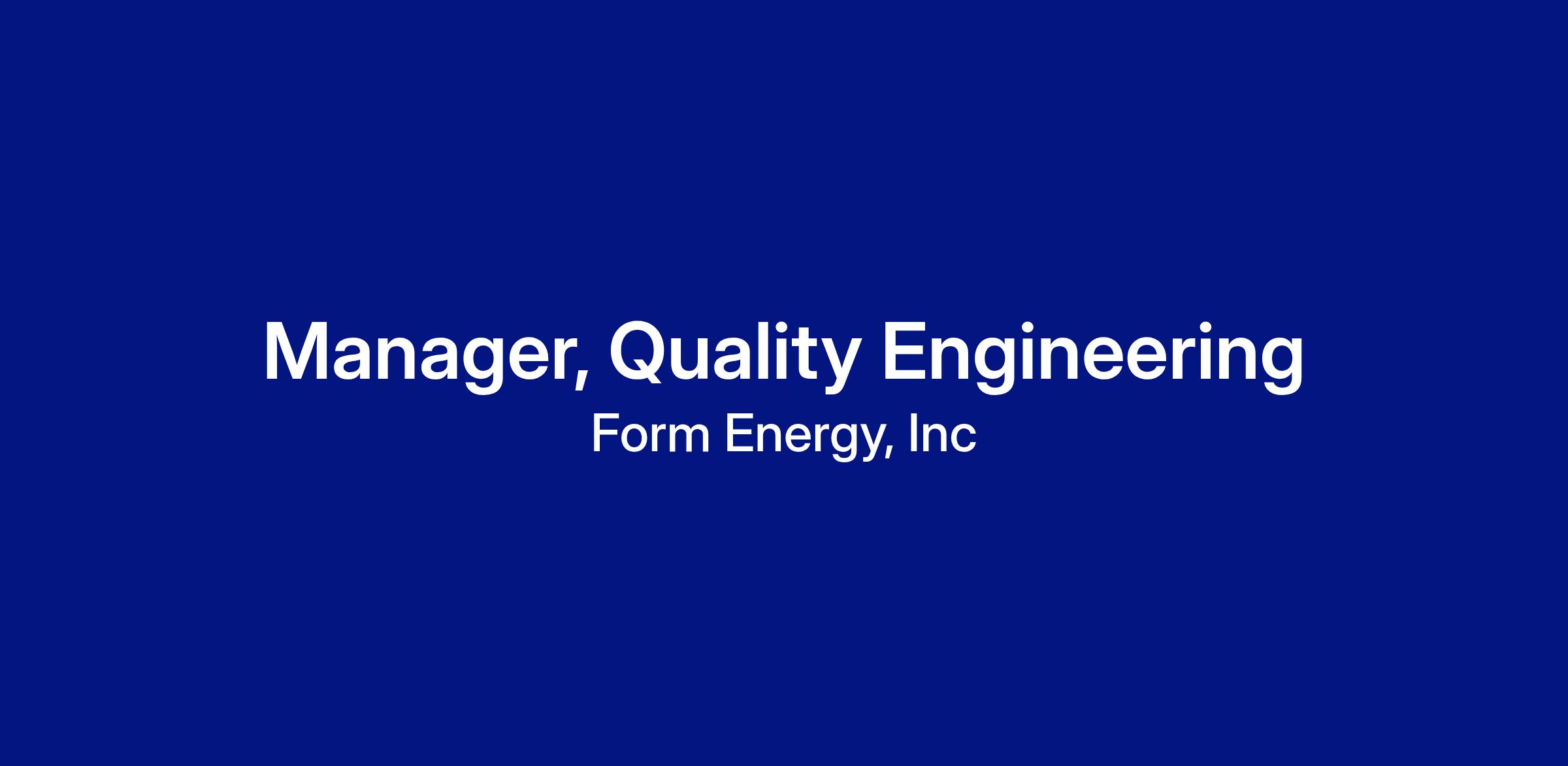 Form Energy is looking for a dynamic manager of quality to join our battery manufacturing organization. In this role, you will develop and implement systems and processes that ensure products are designed, manufactured and shipped to the highest levels of performance, reliability, and quality.