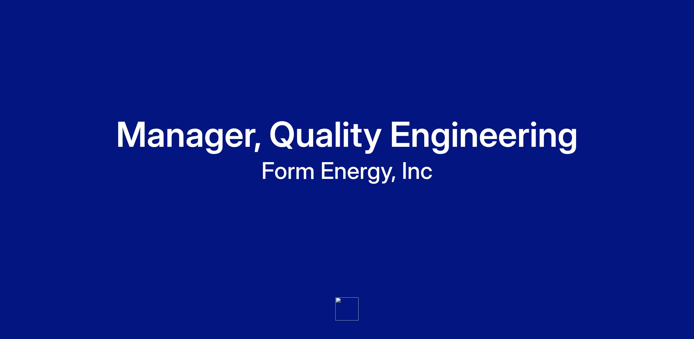 Form Energy is looking for a dynamic manager of quality to join our battery manufacturing organization. In this role, you will develop and implement systems and processes that ensure products are designed, manufactured and shipped to the highest levels of performance, reliability, and quality.