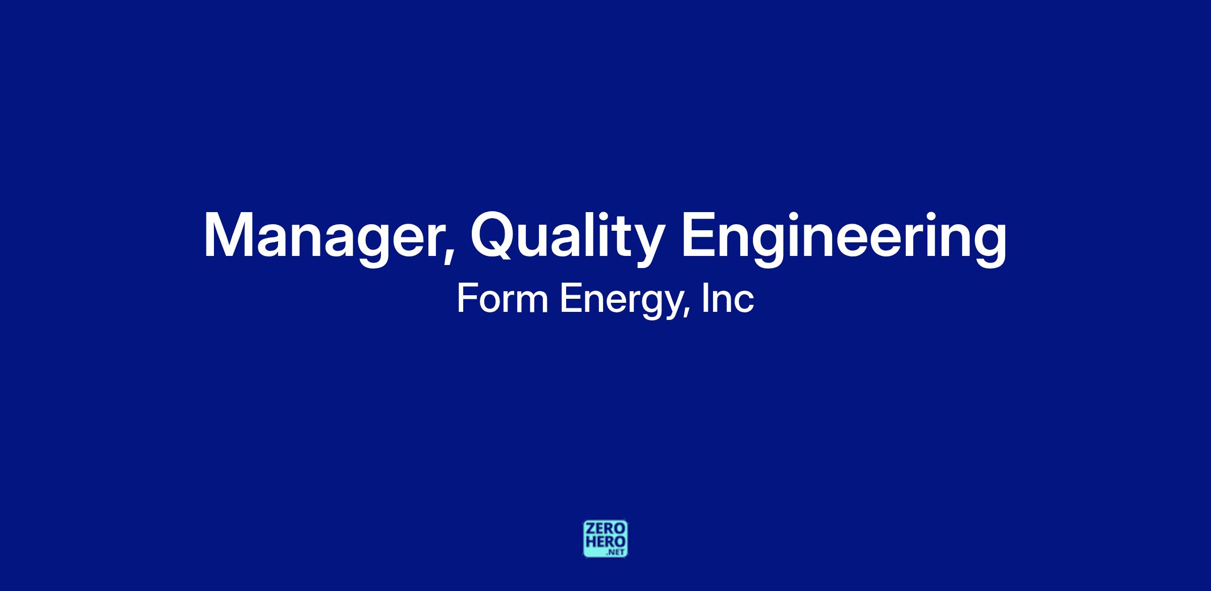 Form Energy is looking for a dynamic manager of quality to join our battery manufacturing organization. In this role, you will develop and implement systems and processes that ensure products are designed, manufactured and shipped to the highest levels of performance, reliability, and quality.