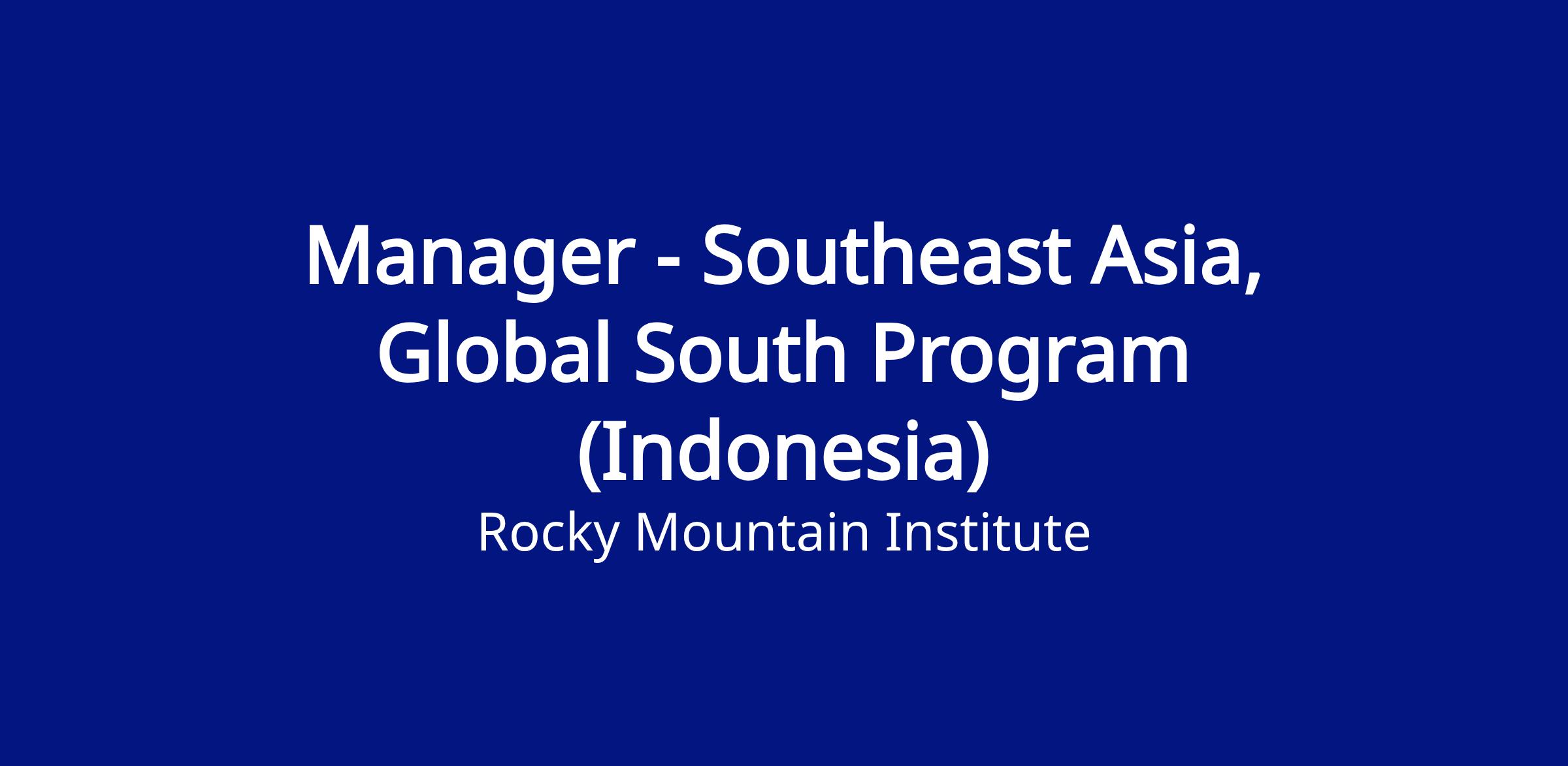 RMI is seeking an experienced manager with proven leadership track record to lead strategic engagements and impactful projects across Southeast Asia’s energy transition, with a strong focus on Indonesia. This role requires high-level problem-solving skills to deliver practical and actionable solutions to the interconnected complexities of political/institutional, financial, demographic, and technological changes in key markets in the region. Therefore, this role is intended for individuals who bring strong judgment, intellectual discipline, strong project management, and can advance projects/initiatives forward to achieve tangible results in a highly uncertain environment.