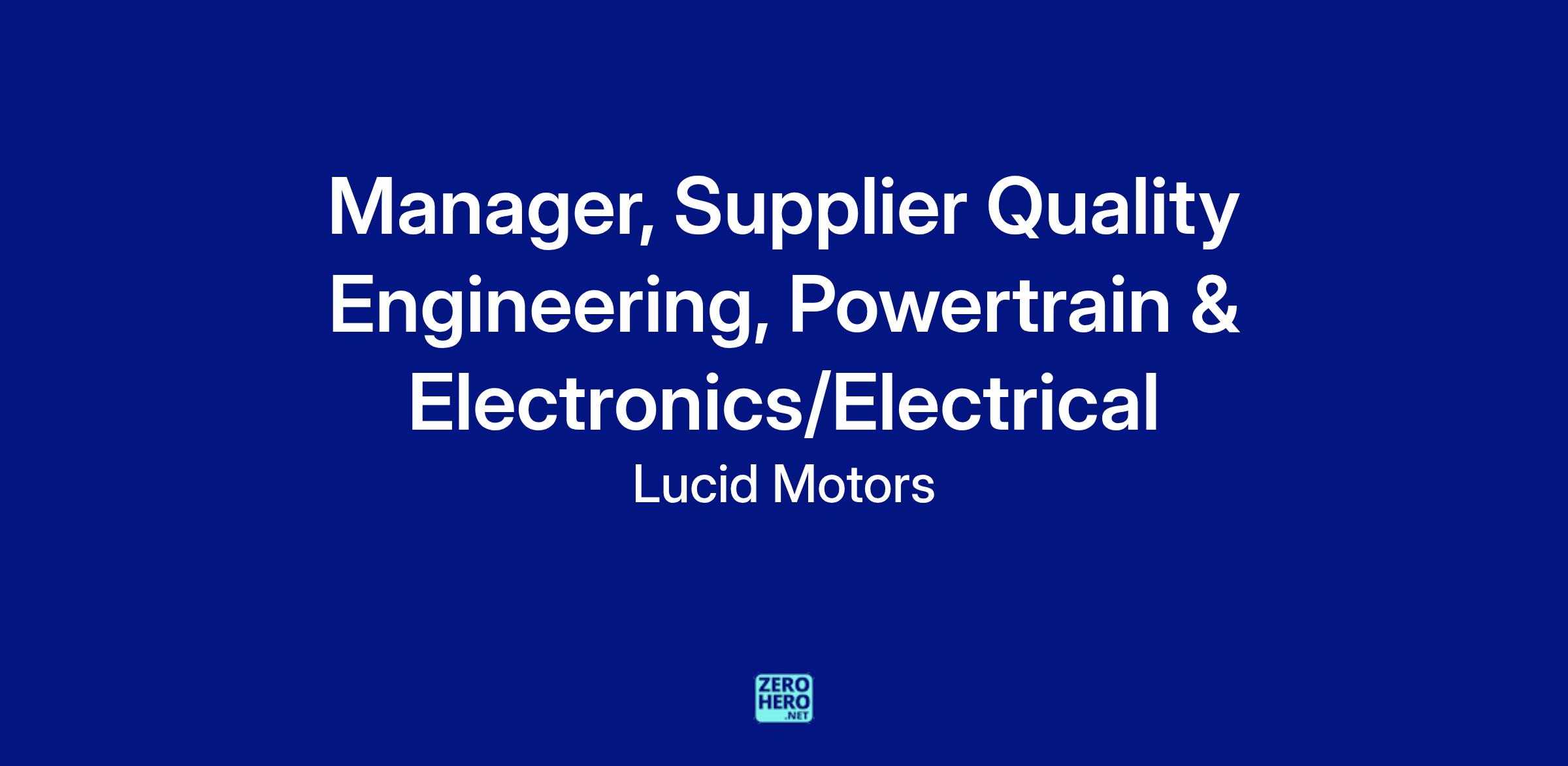 Lucid Motors is seeking a hands-on and strategic Manager to lead Supplier Quality Engineering across our Powertrain and Electrical/Electronics commodities. This role is responsible for overseeing supplier quality throughout the full lifecycle—from early design through mass production—ensuring robust manufacturing processes, effective quality controls, and continuous improvement. The ideal candidate brings deep commodity expertise, strong leadership capabilities, and a collaborative mindset to drive supplier performance and team development.