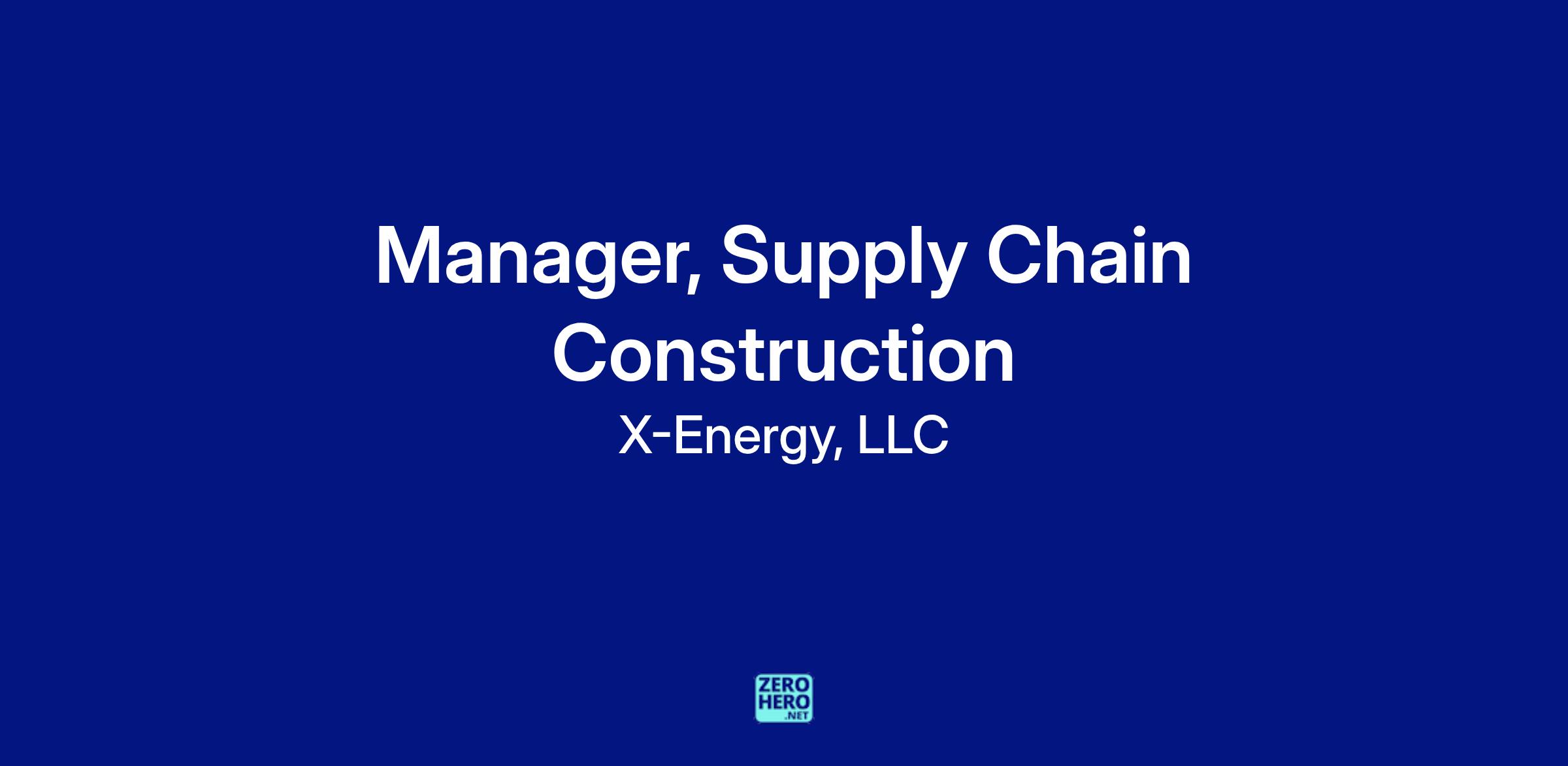 X-energy LLC is hiring a Supply Chain Construction Manager to support its Procurement team. This role supports the strategic direction and implementation of the Supply Chain Process and serves as a primary liaison with Key Suppliers and company stakeholders. The role manages multiple supply chain functions within the plant design, construction, and across our business operations.