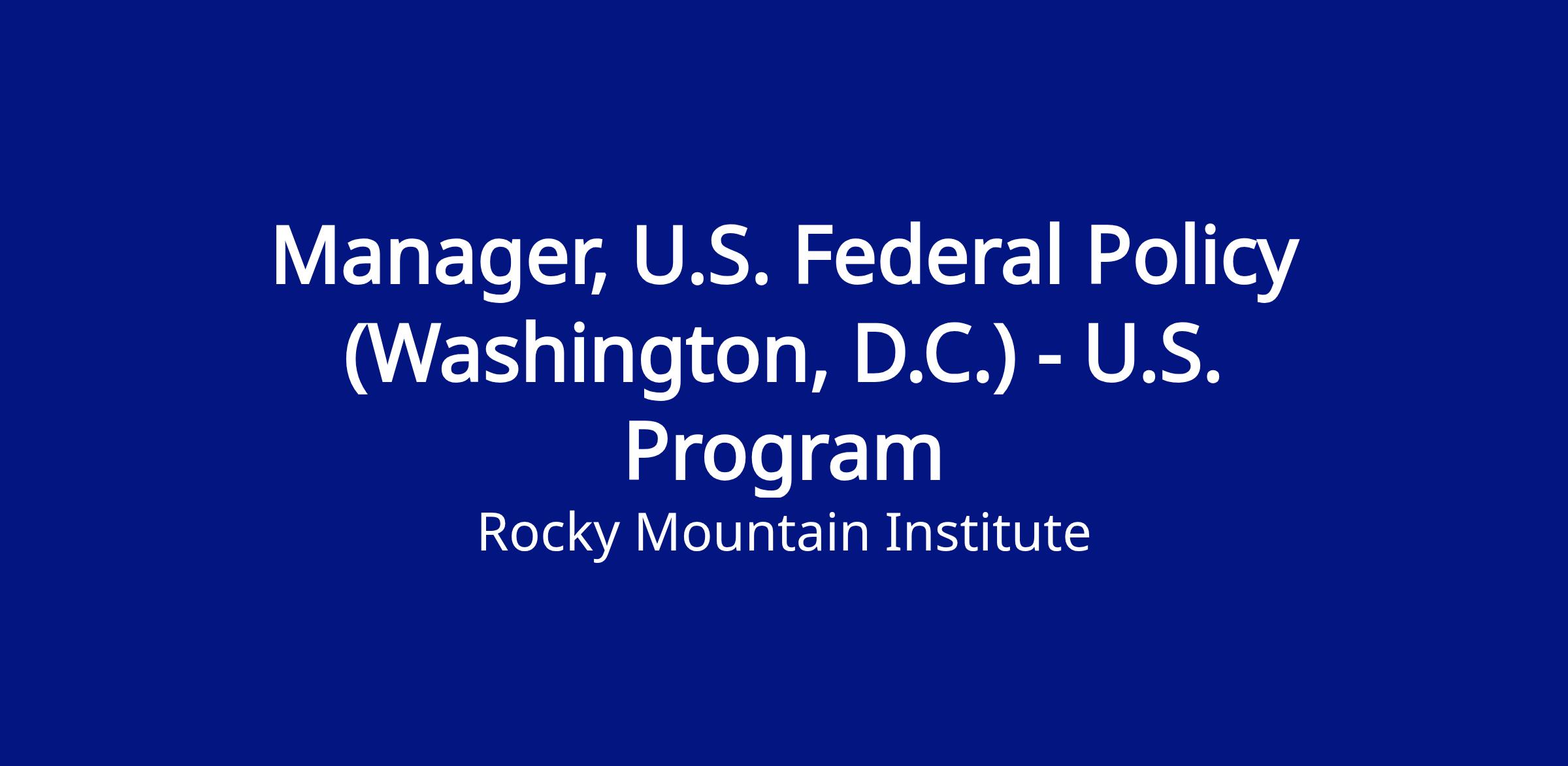 RMI (formerly Rocky Mountain Institute) is seeking a Manager in our U.S. federal policy team. The position will be focused on supporting policymakers, regulators and lawmakers in the U.S. Congress and the Federal government to develop and implement policies that deliver low cost, secure, resilient and clean power. Please note that this role has a strong preference for experience working with coalitions with varying perspectives, including center right groups and industry in the Washington, D.C. area. We work on grid and interconnection; critical minerals; industries including steel, cement, aviation, transportation; and enablers such as manufacturing, supply chains, economic development, finance, and methane management.