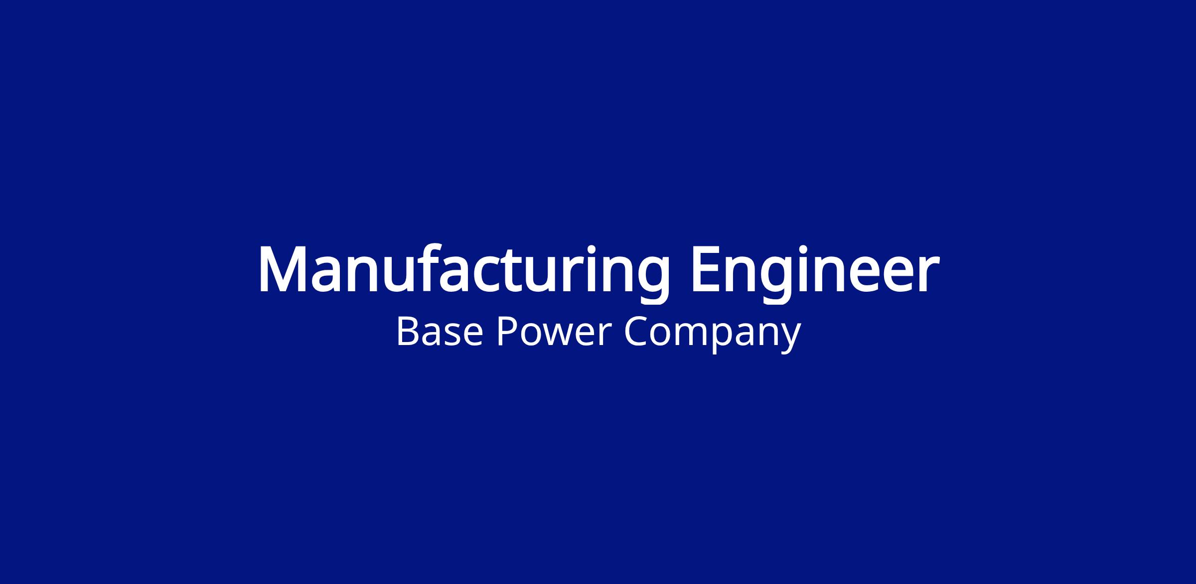 Base is seeking a Manufacturing Engineer to contribute to the design and launch of manufacturing lines to produce our cutting edge battery storage systems. In this role you will work with cross functional teams throughout the lifecycle of the product to develop high quality and efficient manufacturing equipment and processes that will produce Base Power’s battery storage products.