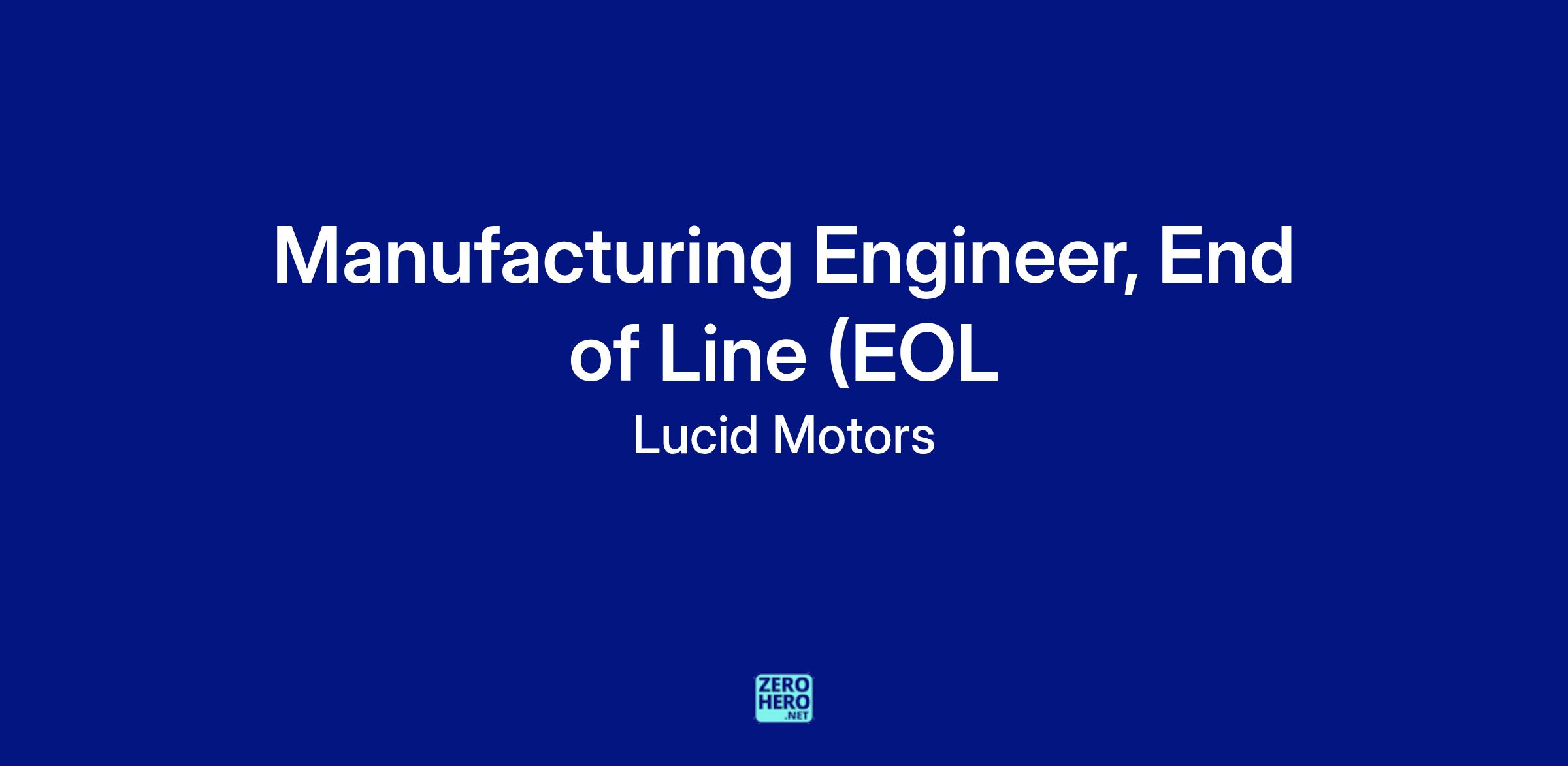 We are currently seeking a Manufacturing Engineer for the End of Line, Manufacturing Engineering team. The Manufacturing Engineer will be responsible for taking the lead role in managing all the electrical testing at Lucid. The Manufacturing Engineer will work closely with Logistics, Manufacturing Operations, Manufacturing Engineers, Product Engineering, New Product Introduction, and other cross-functional teams to ensure the General Assembly process is properly designed and implemented. Our ideal candidate exhibits a can-do attitude and approaches his or her work with vigor and determination. Candidates will be expected to demonstrate excellence in their respective fields, to possess the ability to learn quickly and to strive for perfection within a fast-paced environment.