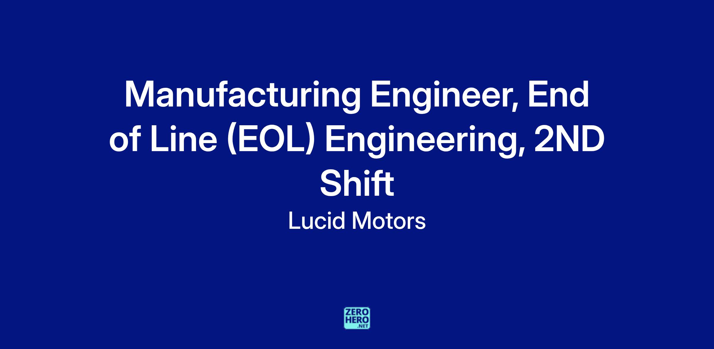 We are currently seeking a Manufacturing Engineer for the End of Line, Manufacturing Engineering team. The Manufacturing Engineer will be responsible for taking the lead role in managing all the electrical testing at Lucid. The Manufacturing Engineer will work closely with Logistics, Manufacturing Operations, Manufacturing Engineers, Product Engineering, New Product Introduction, and other cross-functional teams to ensure the General Assembly process is properly designed and implemented. Our ideal candidate exhibits a can-do attitude and approaches his or her work with vigor and determination. Candidates will be expected to demonstrate excellence in their respective fields, to possess the ability to learn quickly and to strive for perfection within a fast-paced environment.