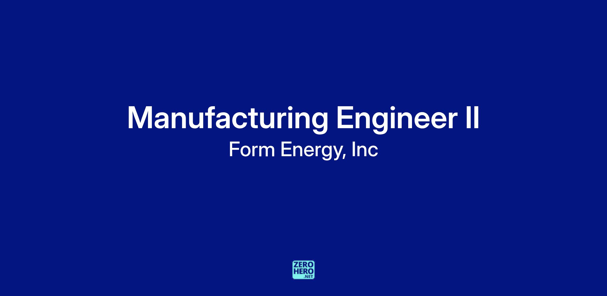 Form Energy is hiring a Manufacturing Engineer to join our world-class engineering team. Our team is responsible for specifying, scaling, and sustaining the equipment and processes that enable high-quality electrode manufacturing for Form Energy’s Iron-Air multi-day battery.