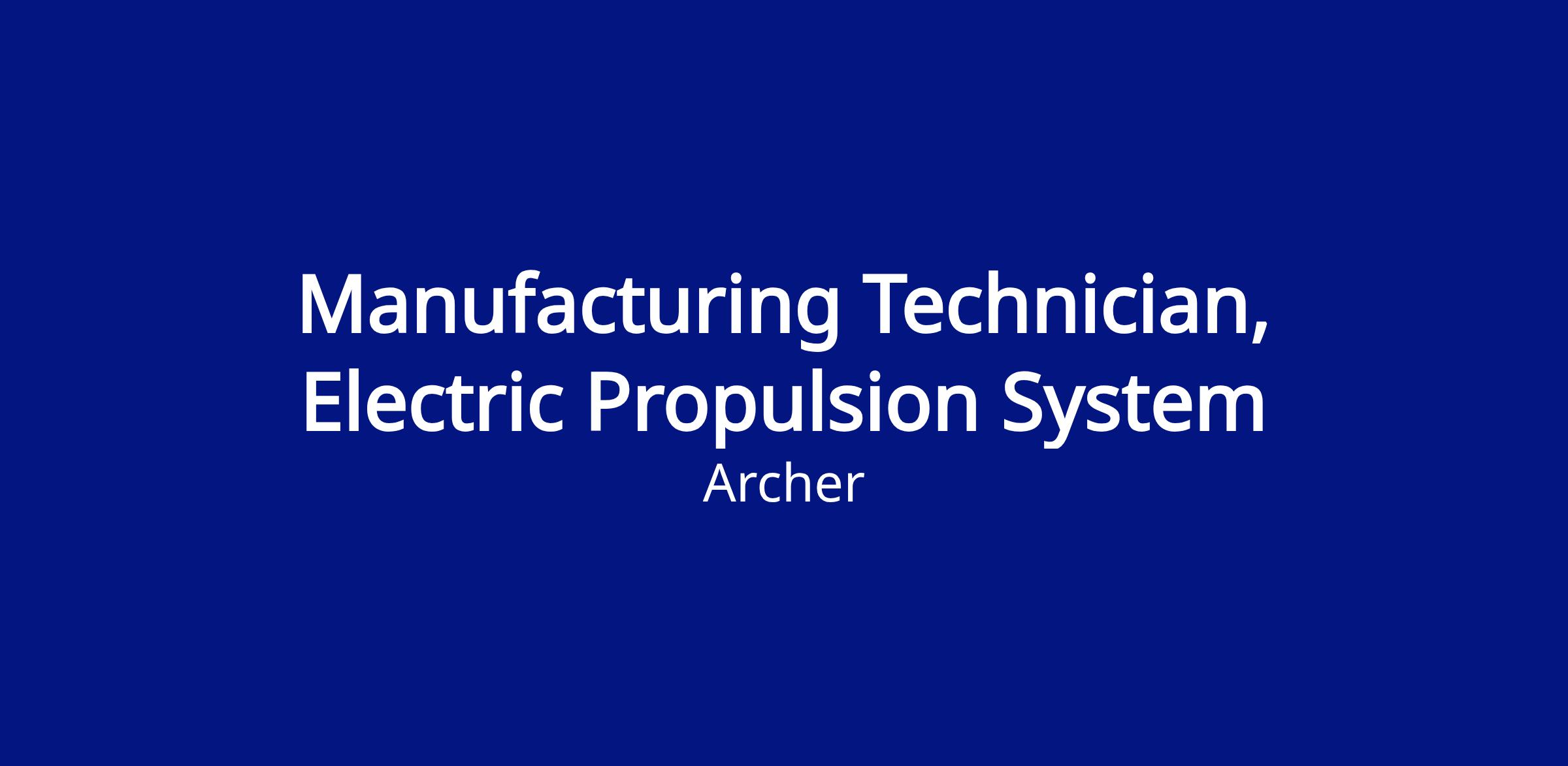 Archer is committed to provide a safe workplace and a safe aircraft. This is a safety sensitive designated role. Employment in safety sensitive positions is contingent on successful passage of a background check and is subject to pre-employment and random drug screening.