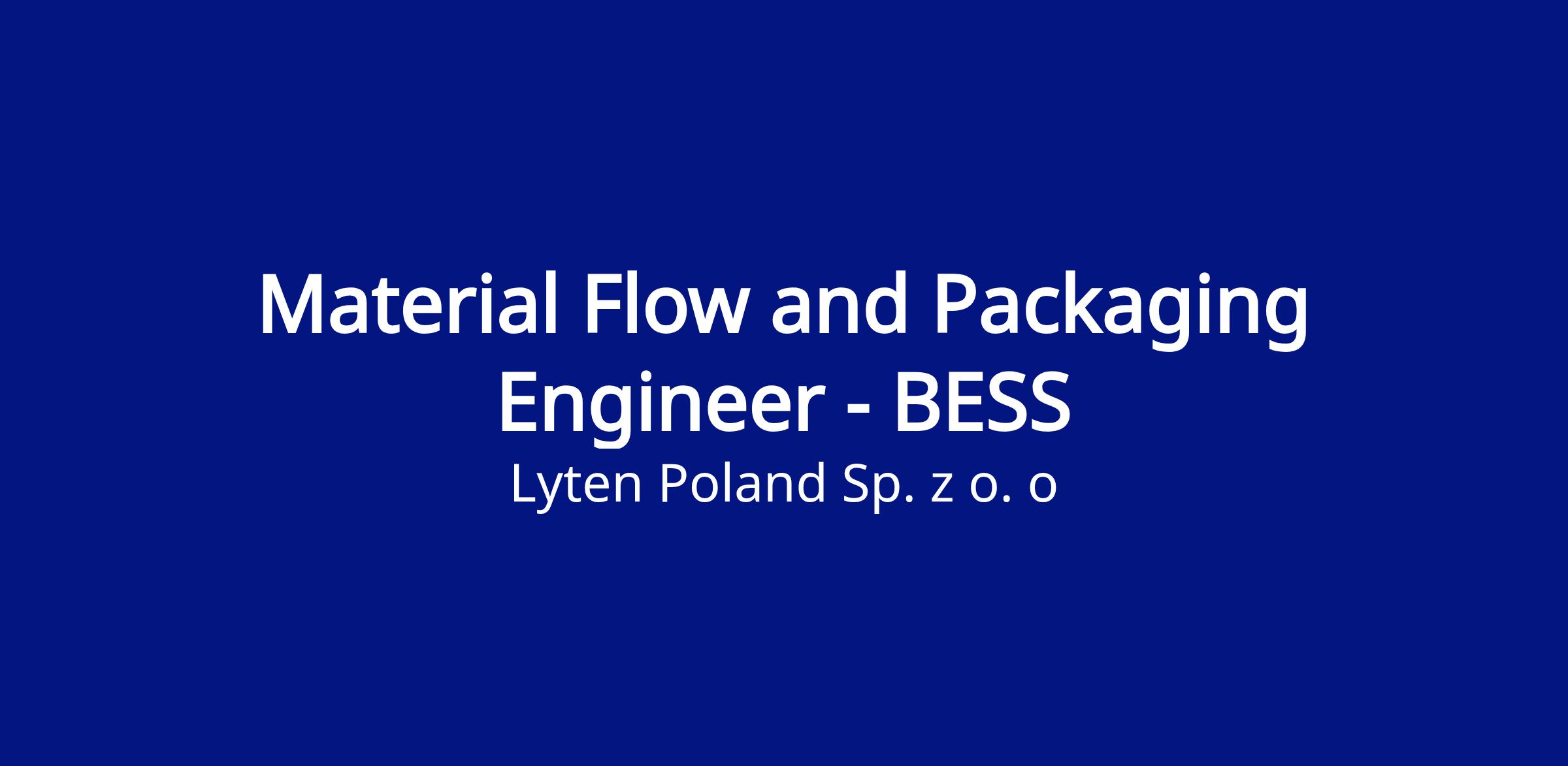 We are expanding our Lyten Poland BESS manufacturing capabilities and looking for a Material Flow and Packaging Engineer who will design, develop, and optimize material flow and packaging solutions for both incoming materials and outgoing finished products. This role is essential for ensuring product protection, efficient handling, smooth warehouse operations, and cost‑effective logistics.