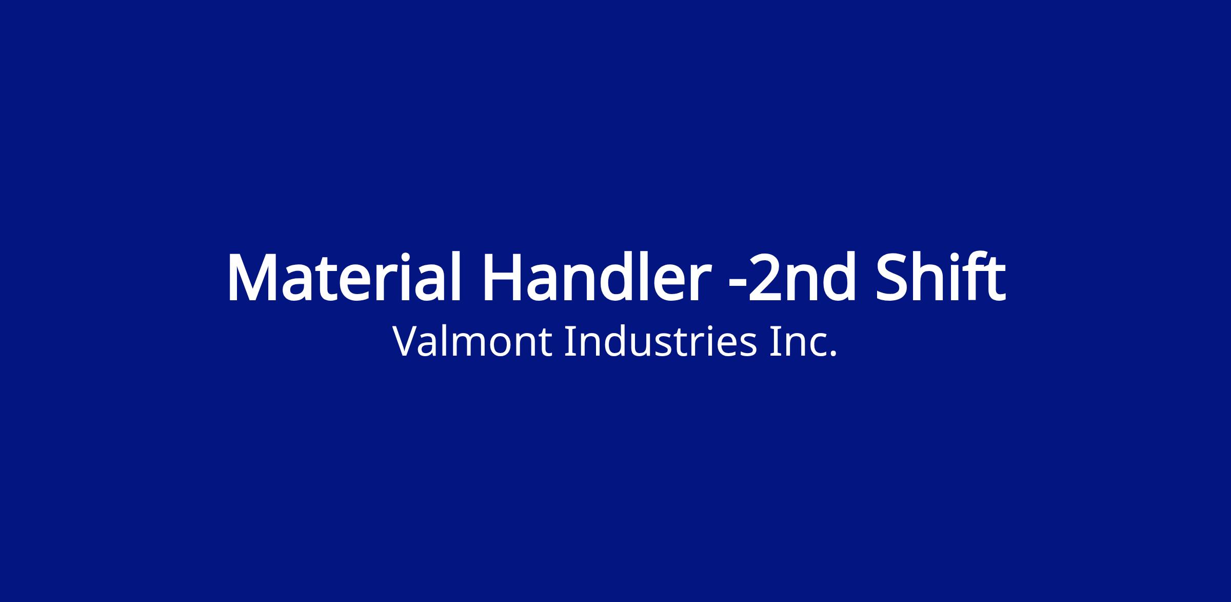 Valmont is currently seeking a highly motivated and talented individual for the Material Handler position. We are looking for a highly driven individual that will transport material and maintain material storage as directed by manufacturing and inventory control procedures. Additionally, you will…