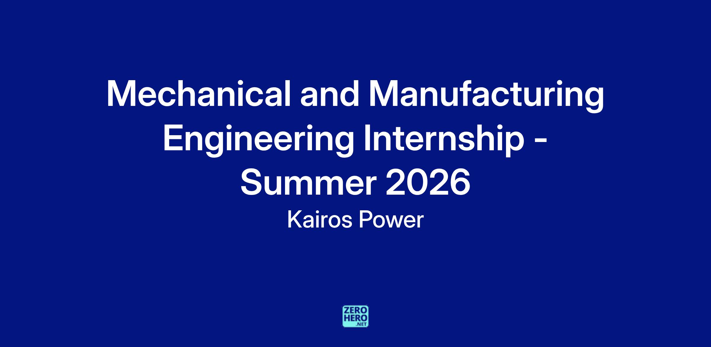 Kairos Power is offering exciting opportunities for students to join various Mechanical Engineering teams for Summer 2026! Contributions on each team will be instrumental to Kairos Power's mission on delivering an innovative technology that will impact climate change.