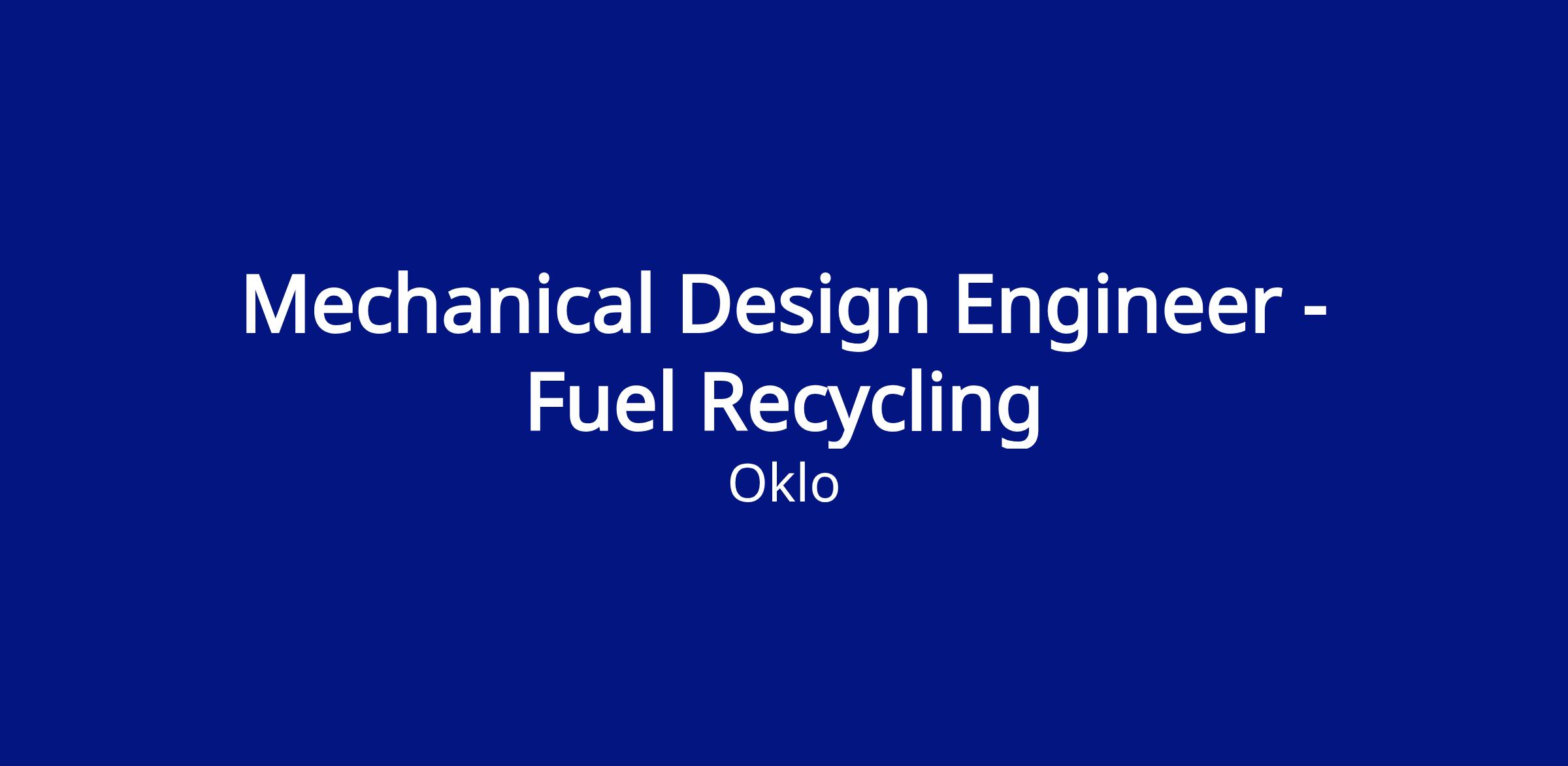 Thanks for your interest in Oklo! We are searching for a Mechanical Design Engineer to join our fuel recycling engineering team.