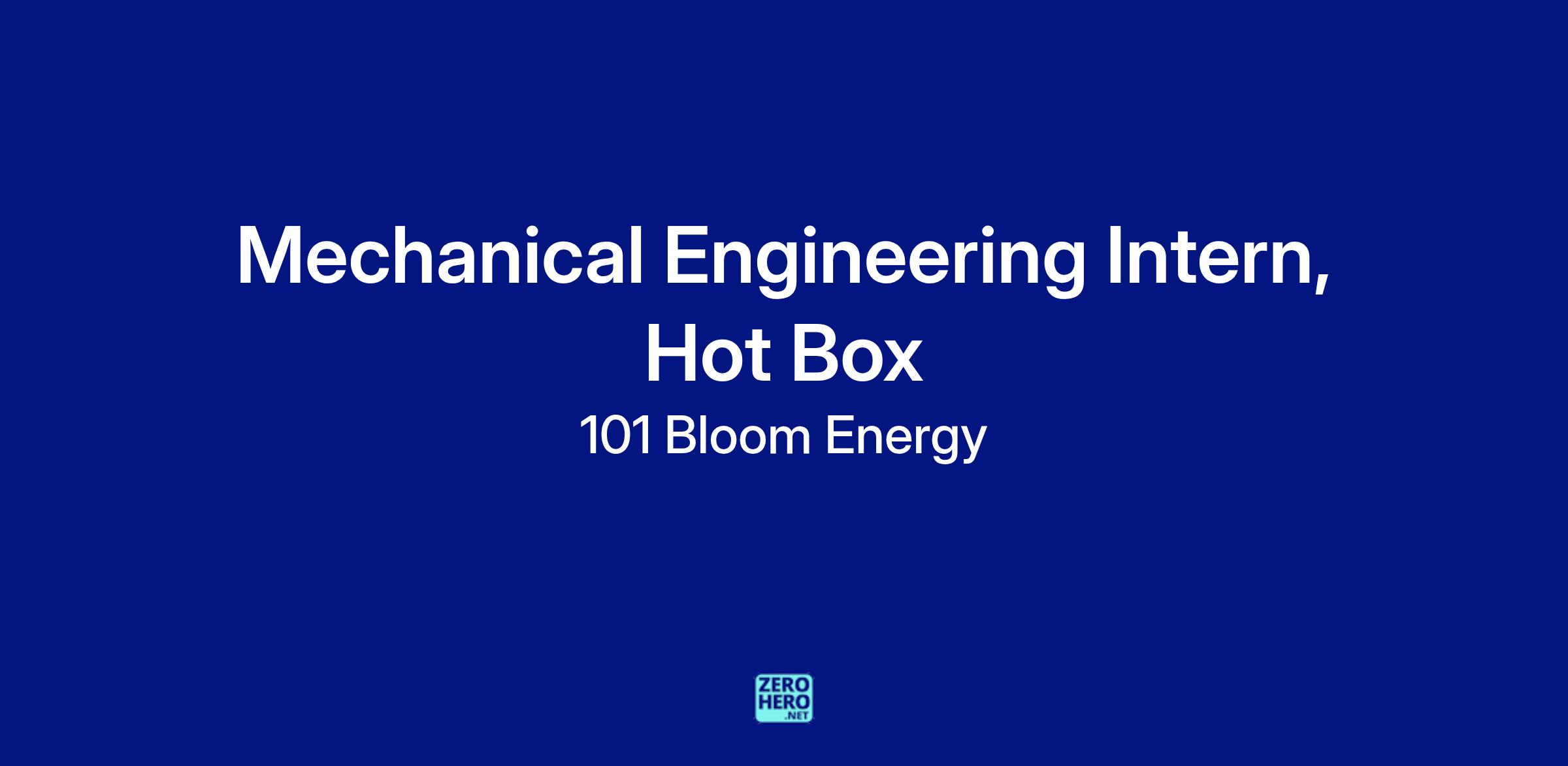 Bloom Energy, a solid oxide fuel cell company, is looking for a Mechanical Engineering Intern for their world class Hot Box Engineering team. This individual should be a dynamic professional who is looking for a rewarding future in one of today’s most exciting technologies.