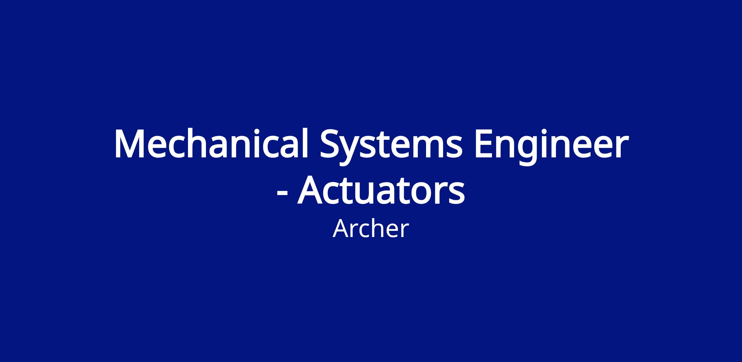 Archer is seeking an experienced Mechanical Systems Engineer – Actuators to lead the design, integration, and validation of high-performance electromechanical actuators for our prototype aircraft. This role requires an understanding of actuator system architecture, requirements development, and performance analysis, as well as multidisciplinary integration across electrical, controls, and thermal domains. As part of our prototype engineering team you will pave the way for our production intent engineering team.