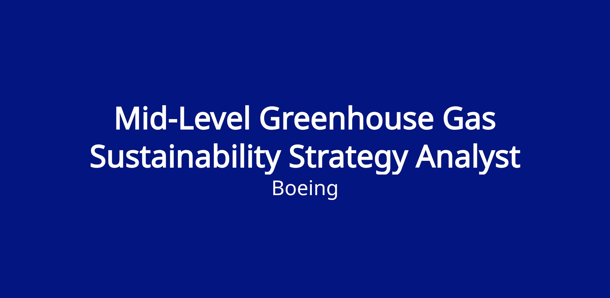 The Boeing CompanyThe Boeing Company is seeking a Mid-Level Greenhouse Gas (GHG) Sustainability Strategy Analyst located in Hazelwood, MO or Tukwila, WA, United States to join our Global Sustainability Reporting and Governance team.