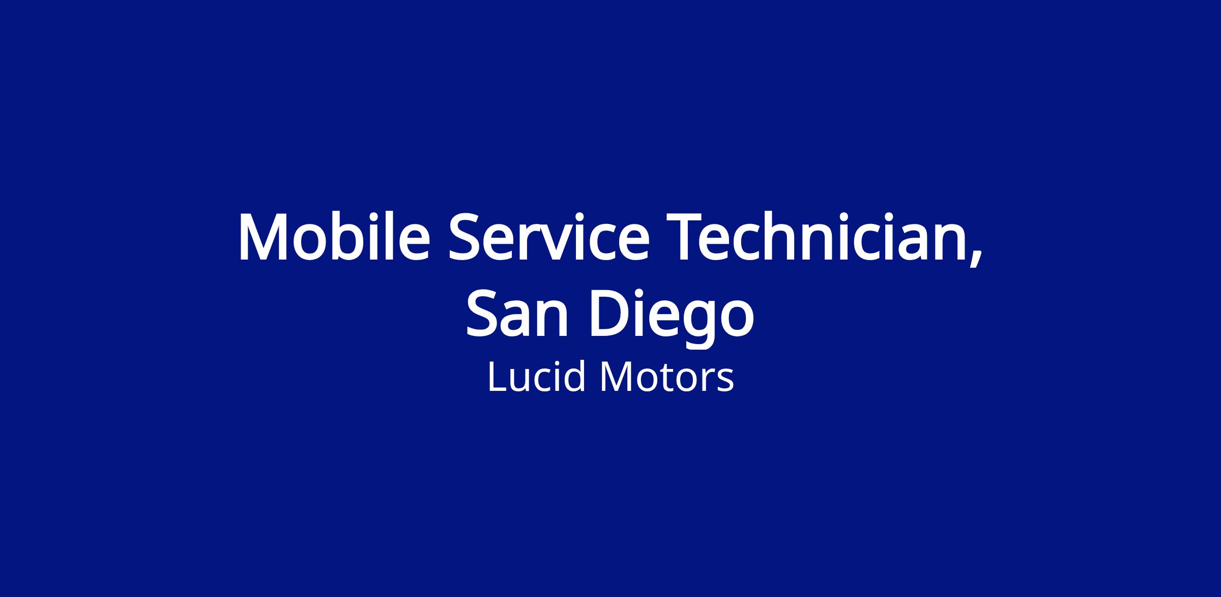 The Mobile Service Technician is a unique position that covers field service repairs. This position would be responsible for traveling to client locations and will be responsible for diagnosing, maintaining and repairing Lucid Motors vehicles in the field. Lucid provides Mobile Service Technicians with a service van or truck and provides the needed tools. This fixed operation position will work independently as well as a team where you will have the support of the closet service location. You will demonstrate your passion for sustainable transportation and creatively solve problems in a fast-paced environment. As a Mobile Service Technician, it is expected to have ASE certifications obtained within 6-8 months of hire date. Lucid will reimburse the cost associated with successful completion.