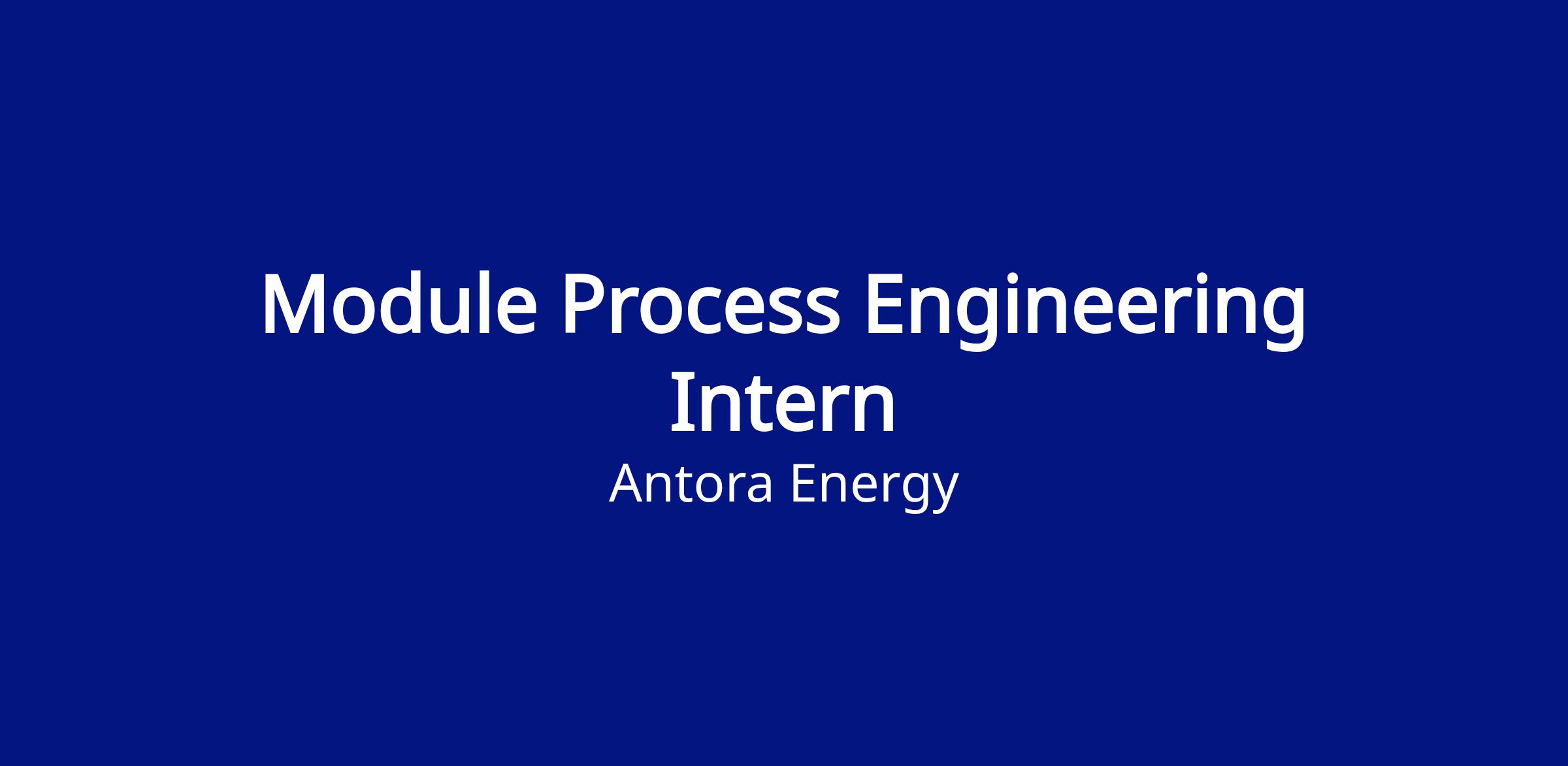 The Module Process Engineering Intern will support Antora’s Module Process Engineering team with a focus on process stability and continuous improvement. This role involves developing and maintaining Statistical Process Control (SPC) systems, conducting root cause analyses on manufacturing deviations, and providing hands-on technical support. The intern will contribute directly to scaling Antora’s TPV (thermophotovoltaic) technology and advancing the company’s mission to deliver affordable, zero-emissions industrial energy.