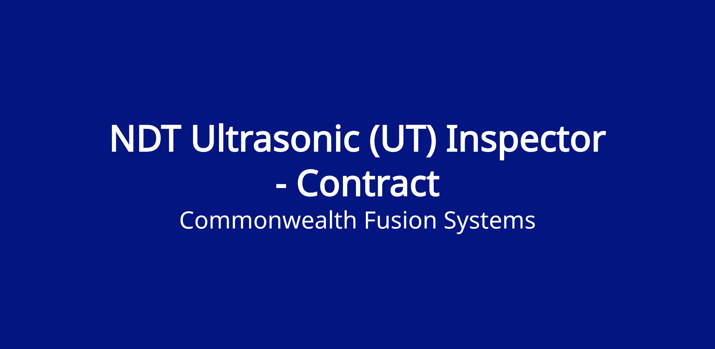 CFS is seeking an experienced Ultrasonic NDT Inspector to conduct inspection and test activities for our SPARC project. You will perform daily inspections on weldments and other ultrasonic applications to support manufacturing operations and R&D.
