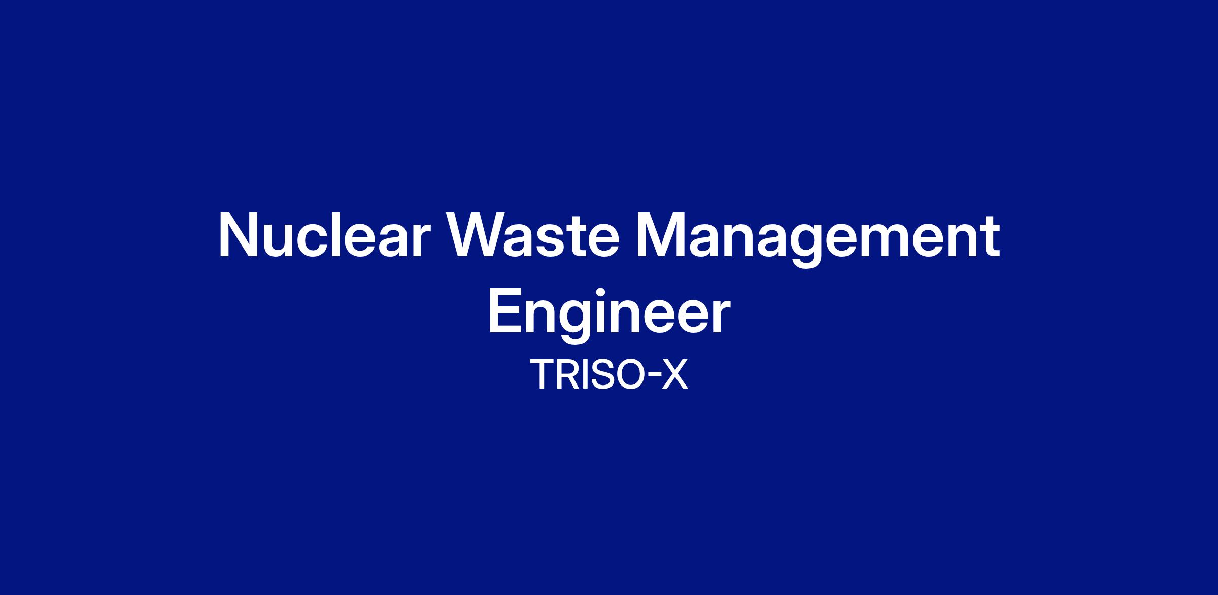 The Waste Management Engineer at TRISO-X plays a critical role in designing and implementing innovative waste management solutions that minimize environmental impact and promote sustainability. Your expertise will guide our initiatives in waste reduction, recycling, disposal and material recovery, ensuring compliance with environmental regulations while optimizing operational efficiency.