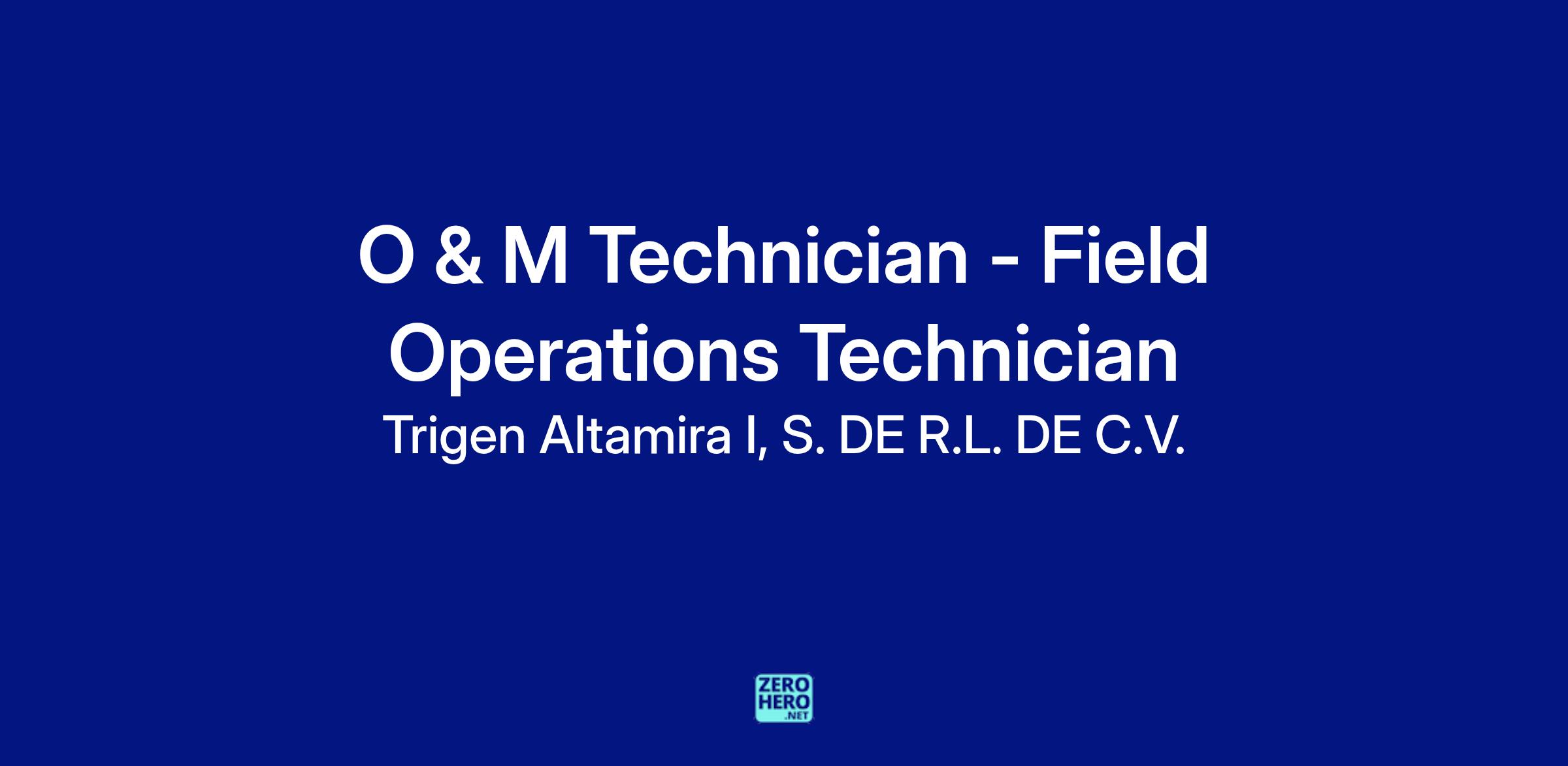 - The O&M Technician will be a proficient team member performing operations, maintenance and technical support to achieve safe, cost effective operation and maintenance of the Altamira Cogeneration Plant.