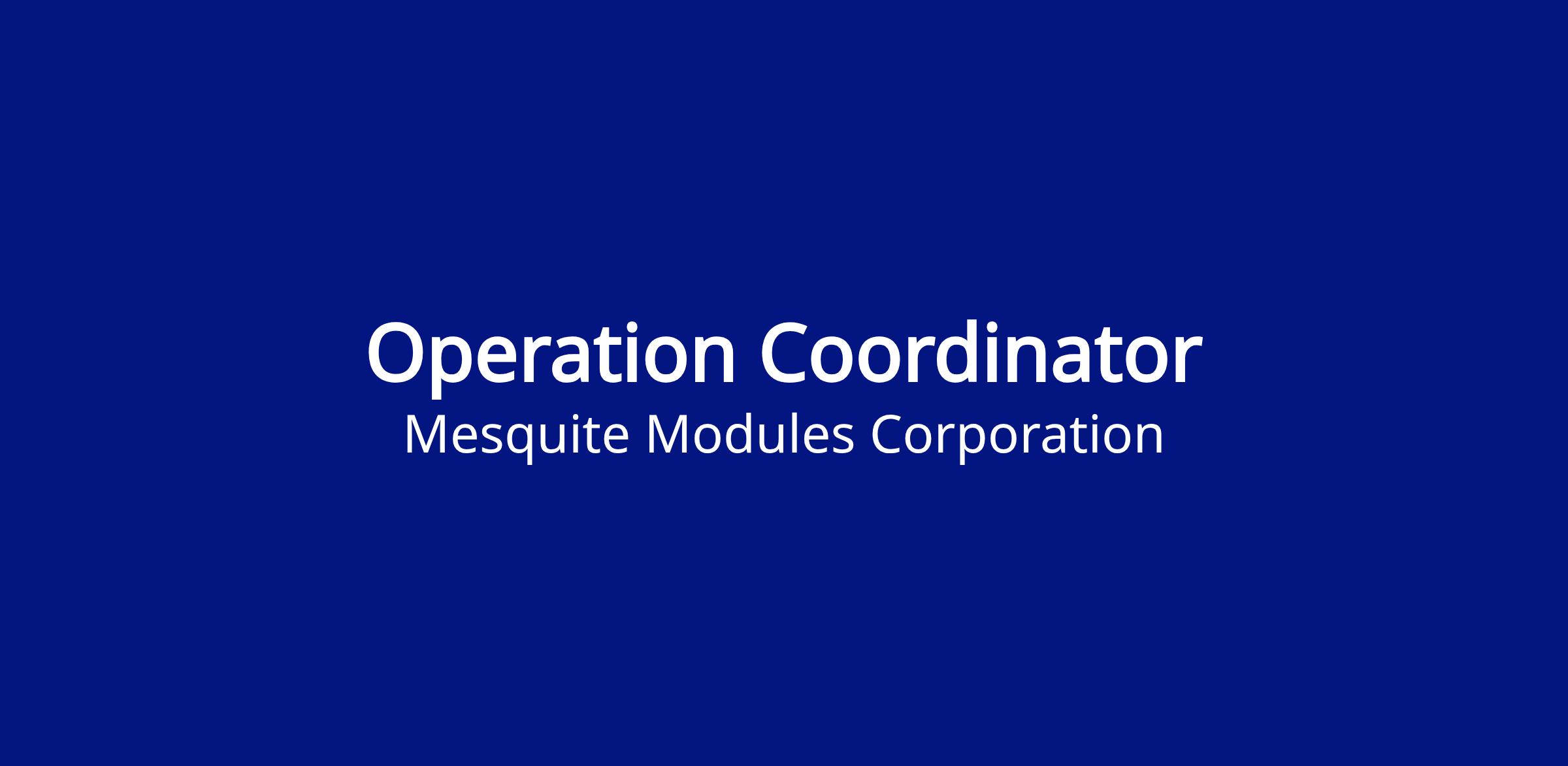 We are seeking a detail-oriented Operations Coordinator to join our manufacturing team in Mesquite,