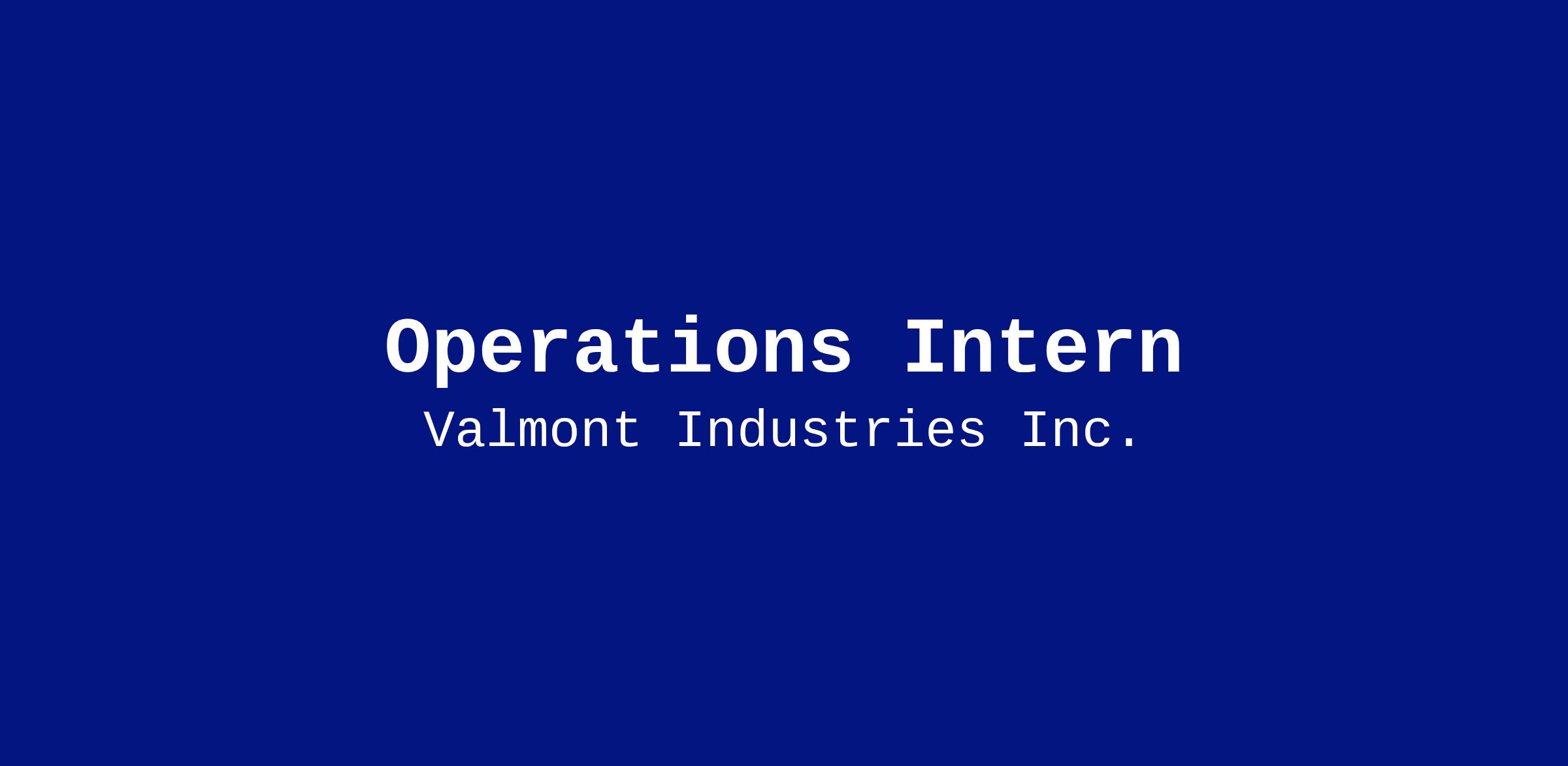 We are seeking a highly motivated and talented Operations Intern to join our team. In this role, you will get exposure to the day-to-day workings of the Production Control, Operations and Warehousing departments. You will have the opportunity to become aware of the production, shipping, warehousing, packaging, kitting, inventory and lean processes at our Valley location. Valmont’s internship program’s mission is to provide a hands-on learning experience through project work, leadership development, job shadowing and interaction with senior leadership. You will also assist a specific department with administrative tasks. You will be given specific responsibilities related to learning a trade or business. The Operations Intern will report directly to Manufacturing Materials Manager. The Internship is a 10-week summer program working 40 hours per week Monday-Friday.
