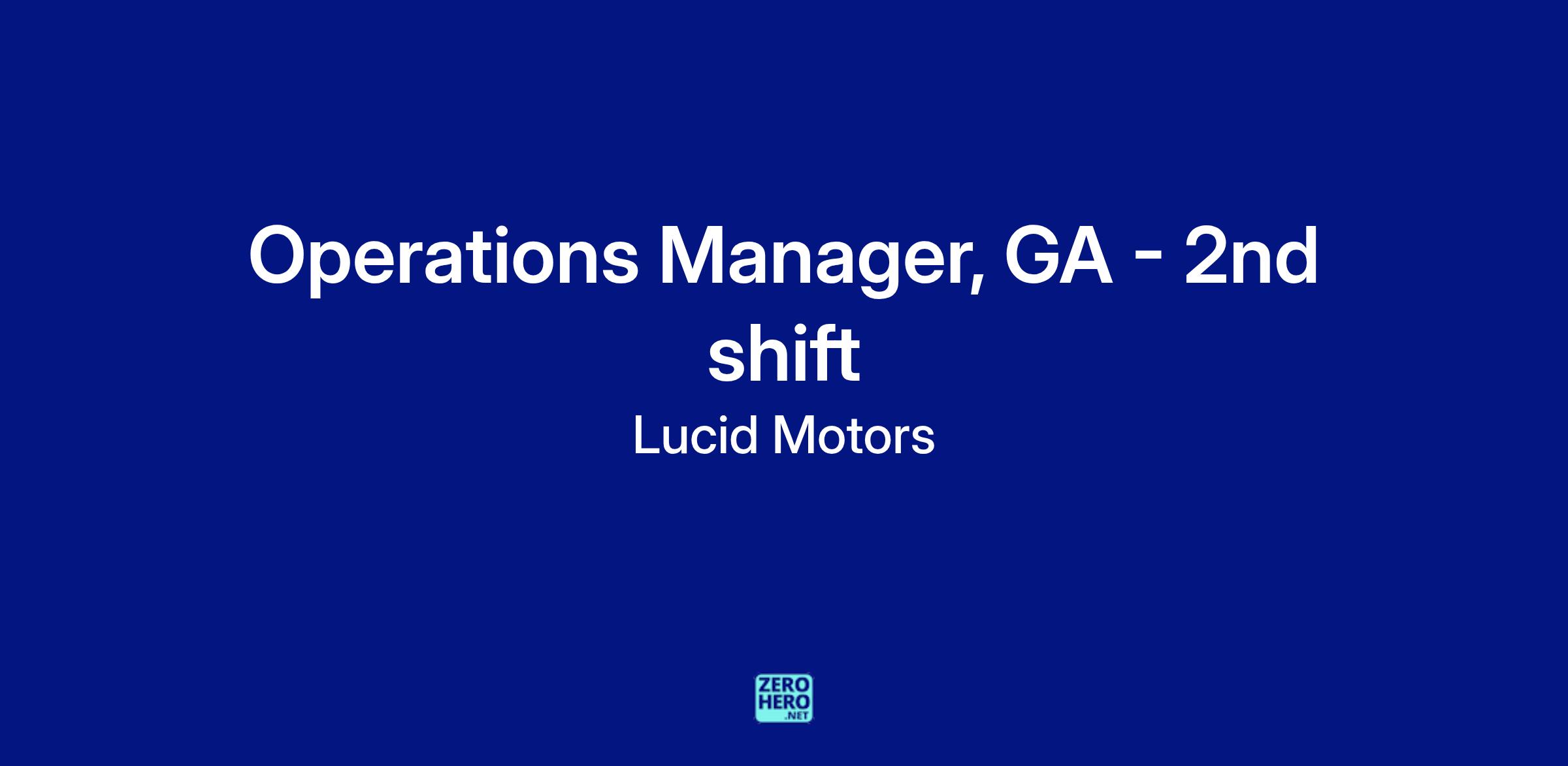 We are seeking a key contributor to join our team as a full time Operations Manager, General Assembly in our Casa Grande, AZ plant for our 2nd shift. The role will lead our General Assembly manufacturing team in achieving its Safety, People, Environment, Quality, Delivery, and Cost KPI’s. The Operations Manager will report to the Sr. General Assembly Manager and is responsible for production flow and inventory management. The Operations Manager will oversee supervisors and coordinate cross functional activities within Lucid.