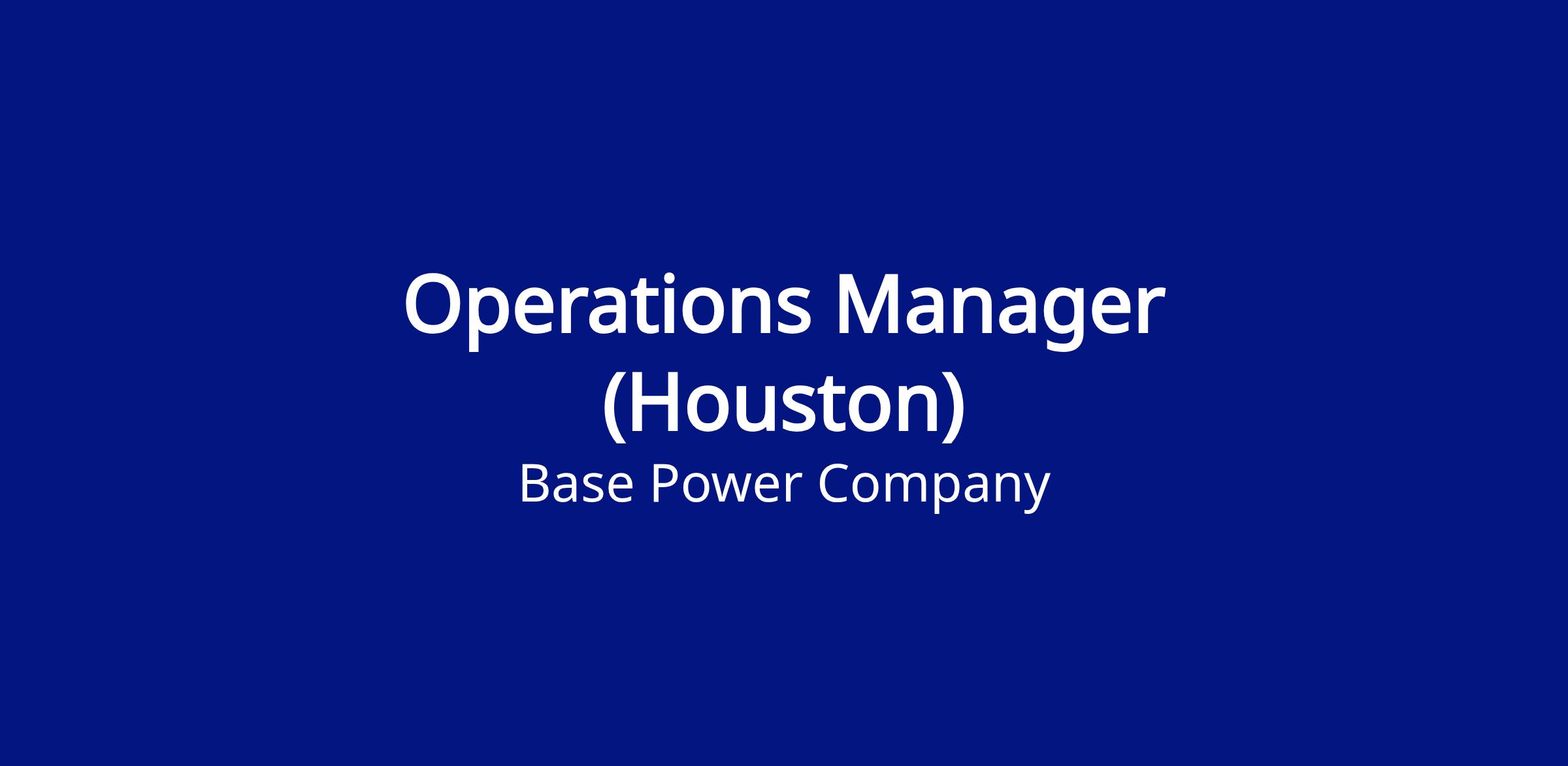 Base is looking for an Operations Manager to lead our Houston, TX market. This is a foundational leadership role responsible for the full operational footprint in the region: warehouse and materials operations, field installation crews, and everything in between. You'll own the end-to-end execution of getting Base systems into homes — from the moment parts arrive at our warehouse to the moment a customer's battery is energized and inspected.