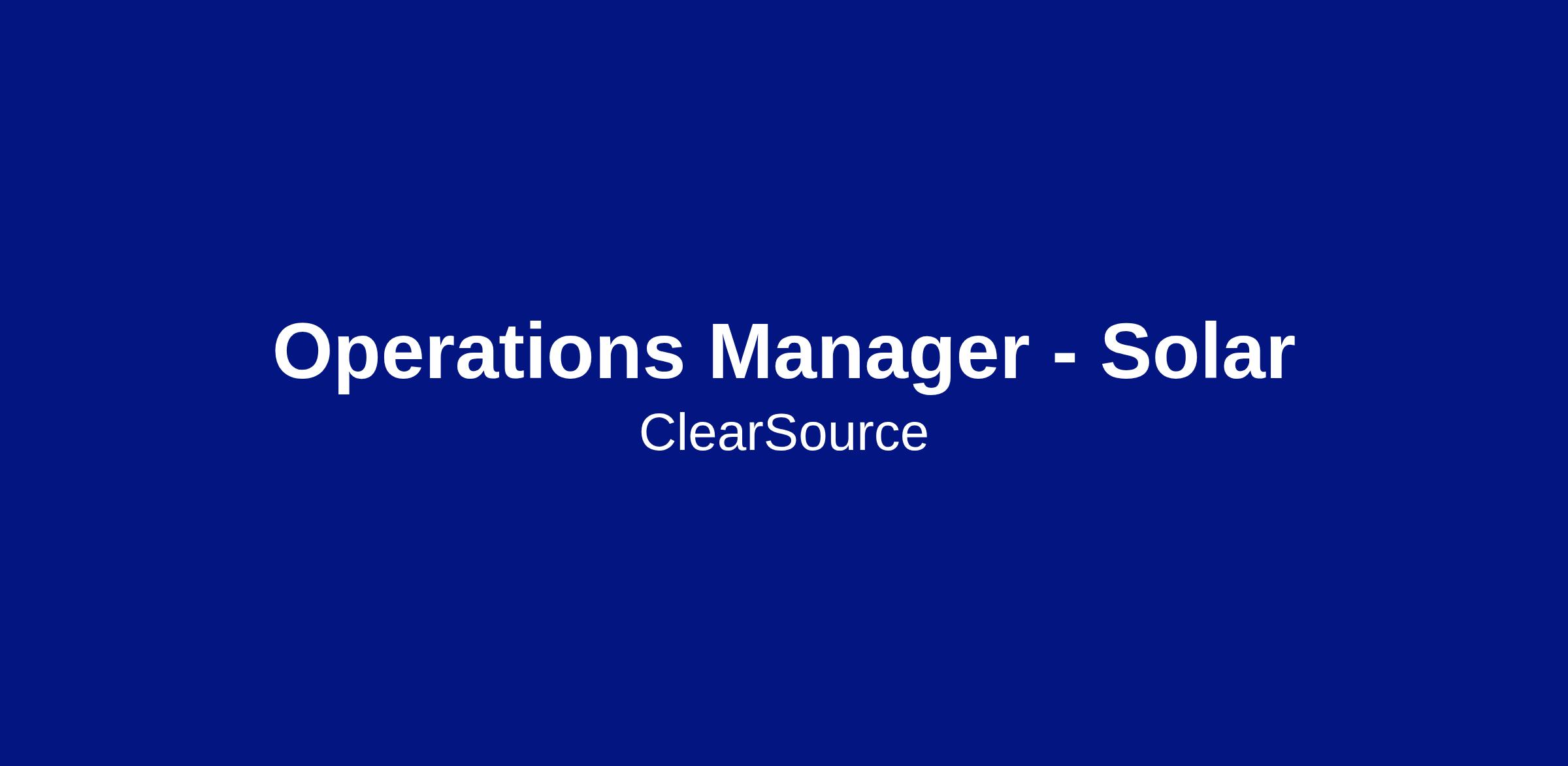 Operations Manager - Solar