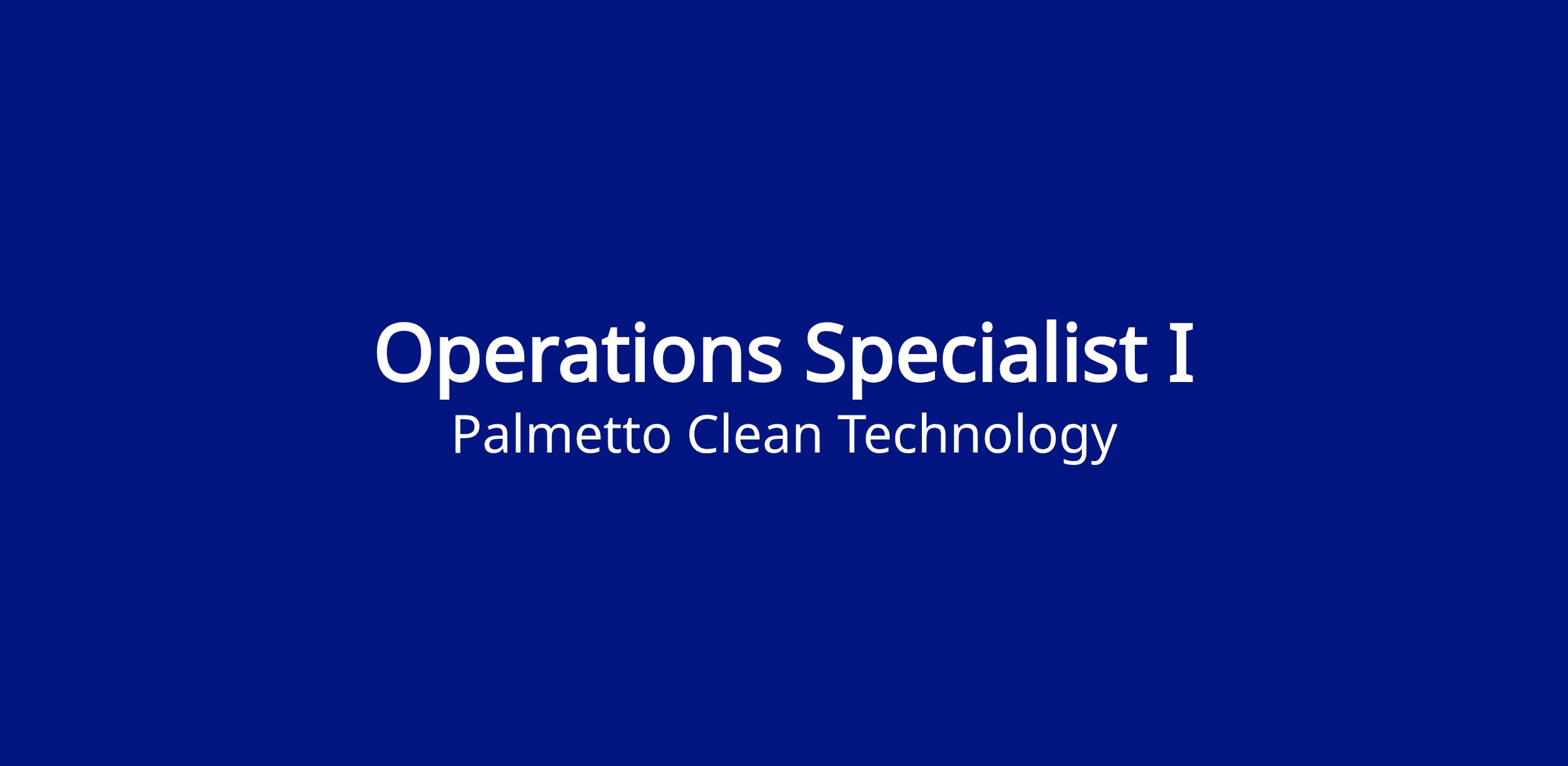 Our employees are our most valuable resource. We foster a promote-from-within culture that prioritizes talent development, career growth, and purpose-driven work. Palmetto offers a comprehensive benefits package—including unlimited PTO, medical, dental, and vision coverage, paid parental leave, retirement plans, and more—so you can have it all both personally and professionally. Palmetto prioritizes people, planet, and profit—backed by a culture that values collaboration, impact, and balance. Join us in building a brighter, cleaner world.