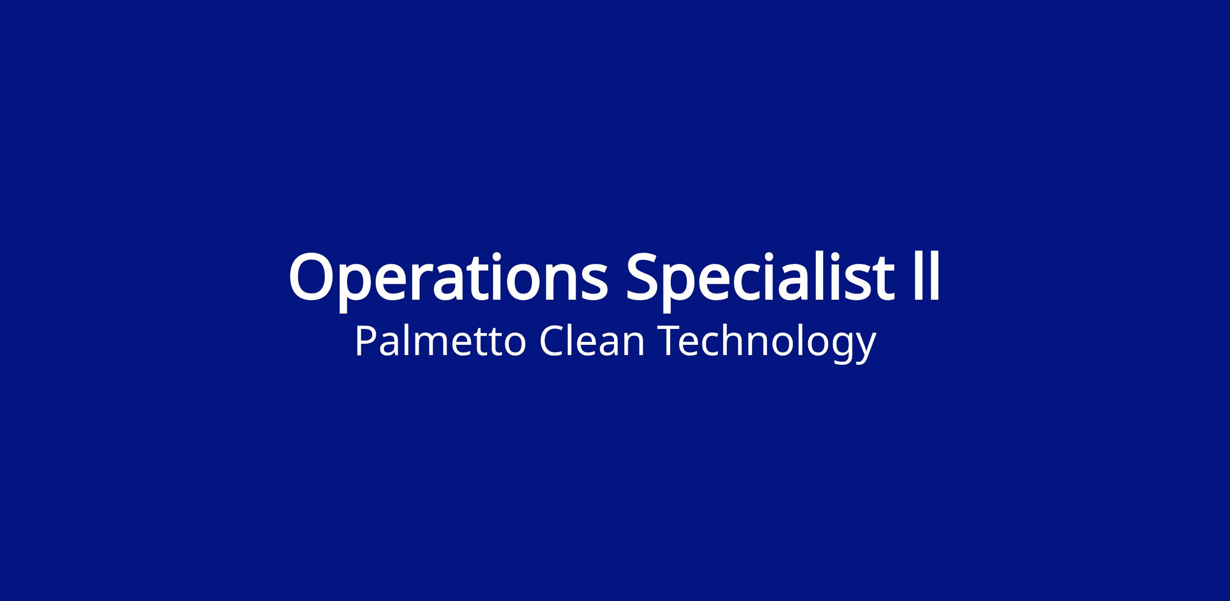 Our employees are our most valuable resource. We foster a promote-from-within culture that prioritizes talent development, career growth, and purpose-driven work. Palmetto offers a comprehensive benefits package—including unlimited PTO, medical, dental, and vision coverage, paid parental leave, retirement plans, and more—so you can have it all both personally and professionally. Palmetto prioritizes people, planet, and profit—backed by a culture that values collaboration, impact, and balance. Join us in building a brighter, cleaner world.