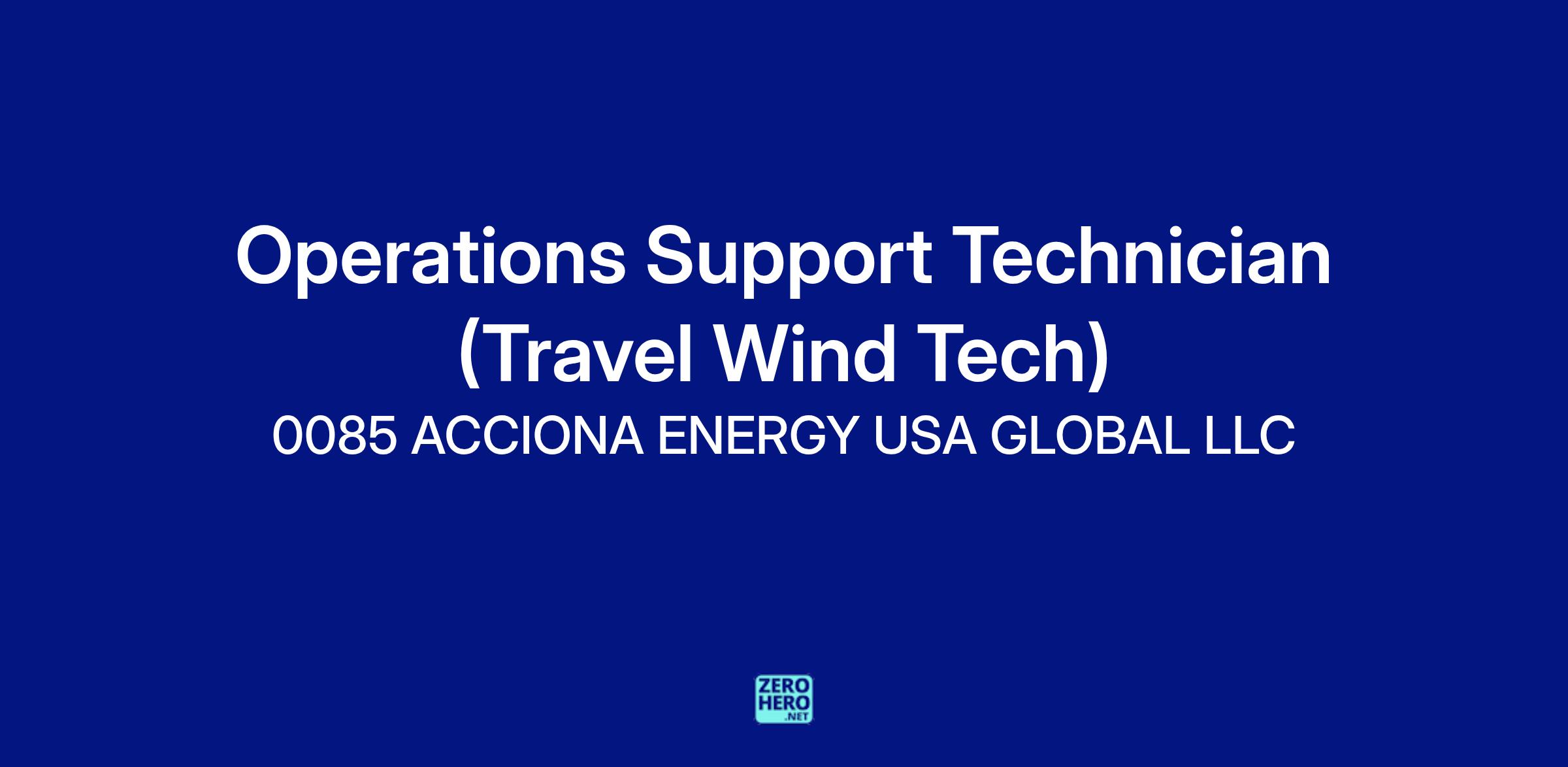 Acciona is looking for a an Operations Support Technician/Traveling Wind Turbine Technician travel as needed to service ACCIONA projects throughout ACCIONA Energía is looking for an Operations Support Technician / Traveling Wind Turbine Technician to service ACCIONA projects throughout North America as needed. This position works alongside a team of highly trained professionals to maintain facilities surrounding wind turbines, with a strong focus on major component replacement and preventative maintenance.Job Description