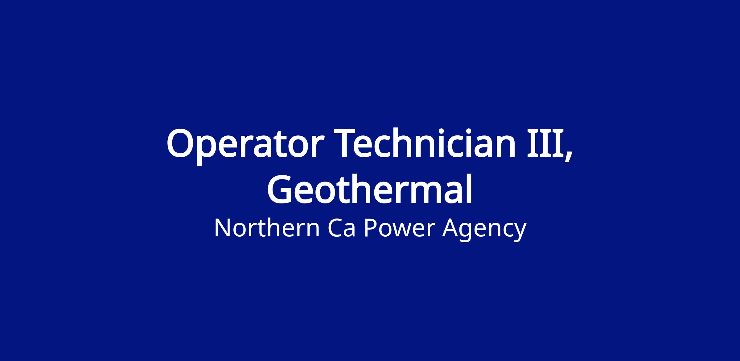 Completion of the NCPA Geothermal Operating Training Program. In addition, pass the operator/technician aptitude test and complete the technical training as defined by management as necessary to fulfill the job’s duties and responsibilities.